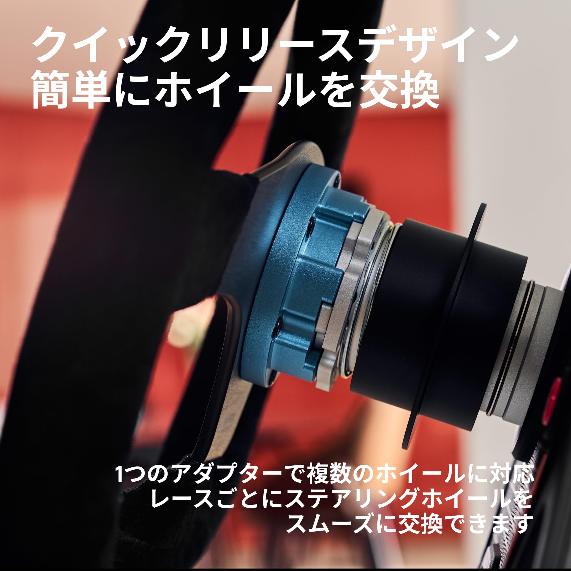 * RS QR Adapterとお好みのステアリングホイールを使用して、あなたのレーススタイルに合った理想的なセットアップを構築してください。クイックリリースを使えば、数秒でホイールを交換可能です。
