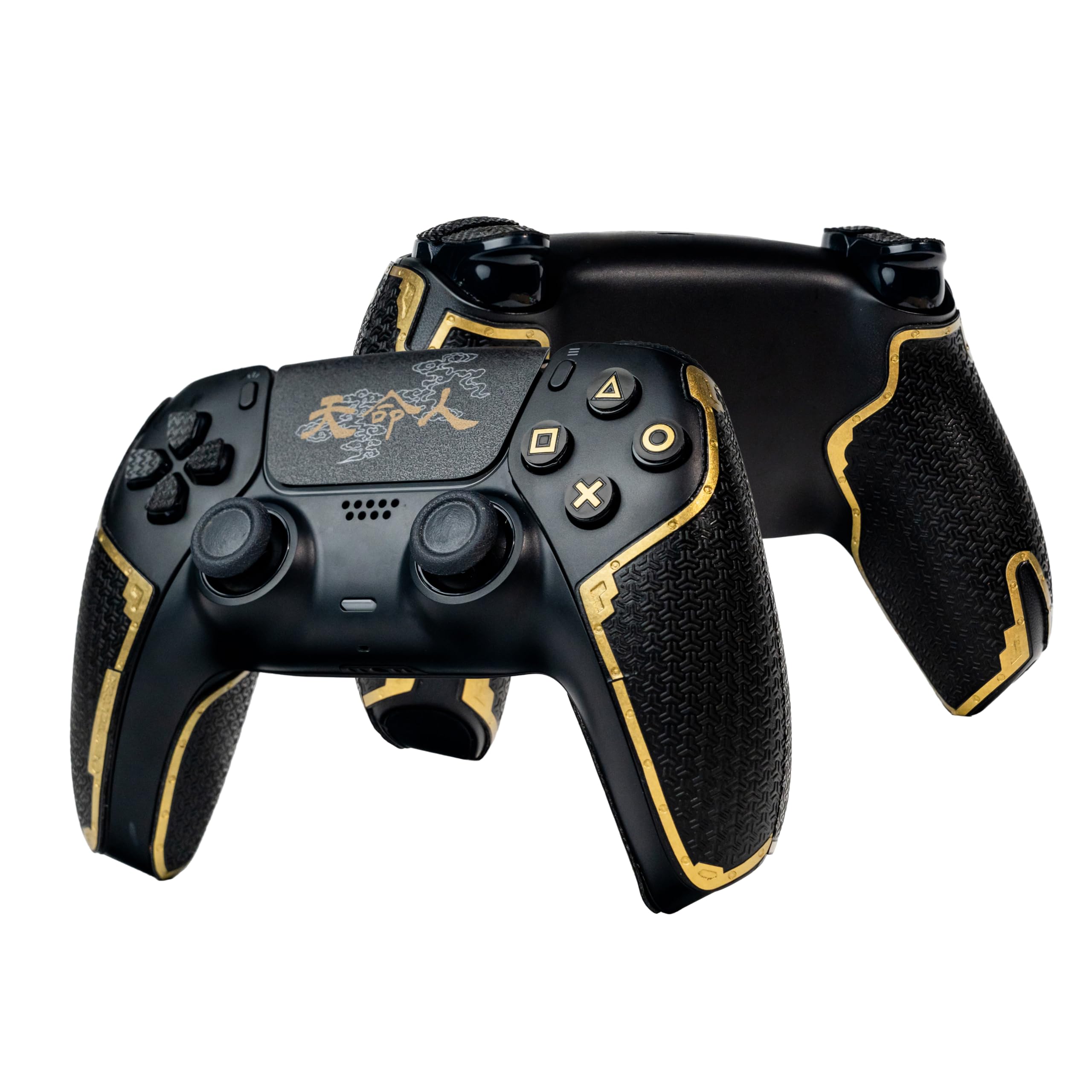 SHADOW BOOLT製 PS5 DualSense Edge用コントローラーグリップ、スキンキット、滑り止め、多素材テクスチャー、汗吸収、事前カットグリップテープ(ブラック&ゴールド、ガーディアンシリーズ2.0、DualSense対応)