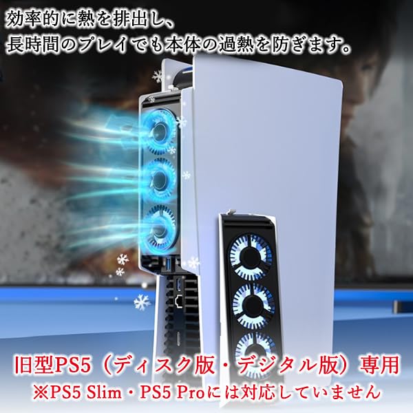 PS5用 冷却ファン 旧型PS5用【ゲーマー推薦】放熱クーラー 2段階風速 LEDライト USB3.0ポート ディスク版 デジタル版対応 PS5 Slim/Pro非対応