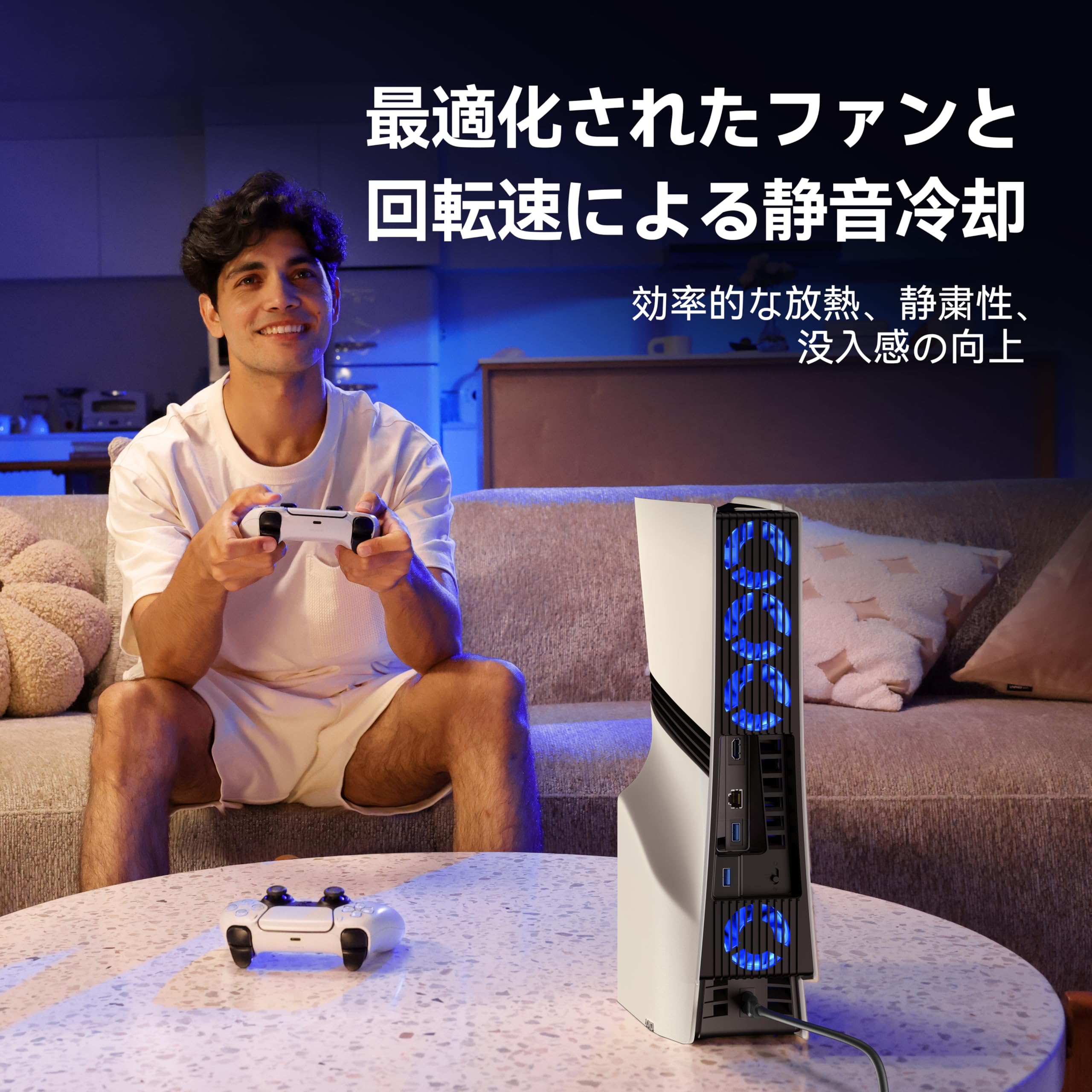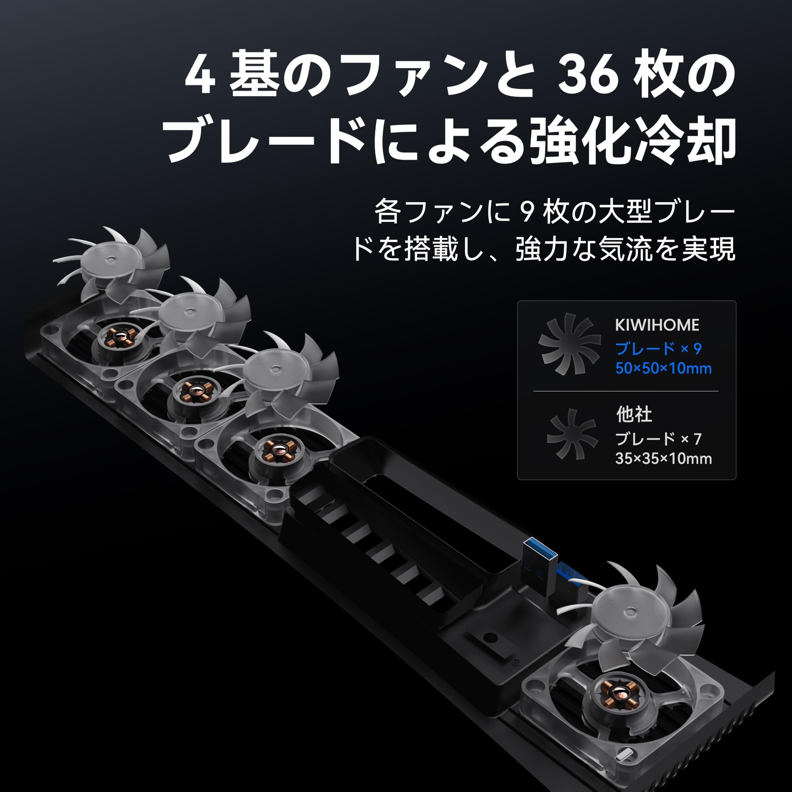 KIWIHOME PS5 PRO用 冷却ファン 四つのふぁん&36ブレード PS5 Pro 冷却 対策 ps5 pro 周辺機器 自動温度検出 風速調整可能 LEDライト付き 冷却ファン USB 3.0 低騒音 熱対策 ps5 Pro アクセサリー プレイステーション5 pro用 取り付けが簡単 縦置き・横置き両適用ディスク通常版/デジタル版対応 【PS5/PS5 Slim非対応】