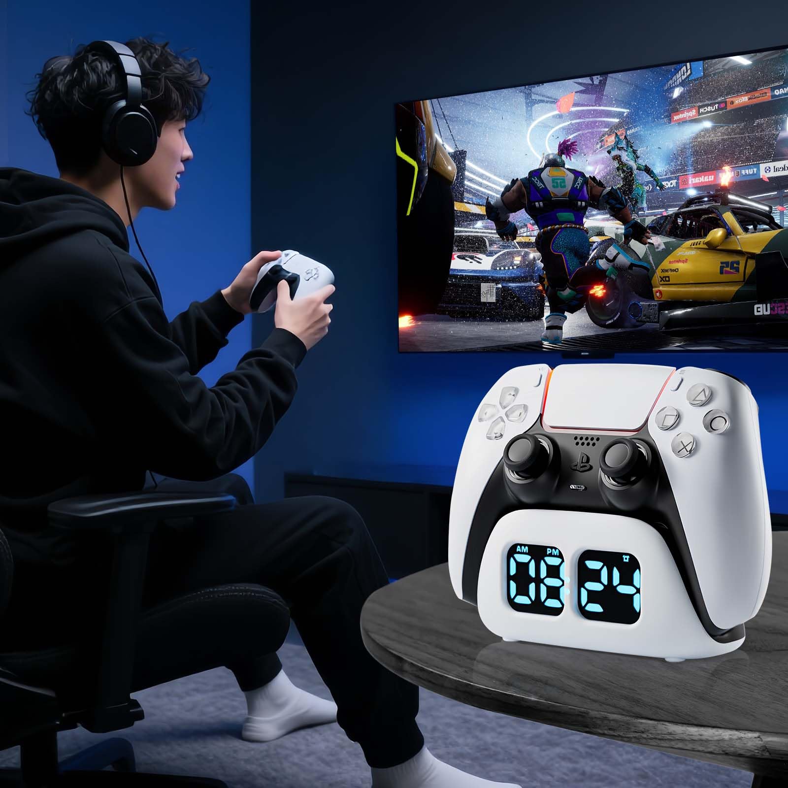 * 【スマート充電と時間管理】この充電スタンドはPS5用コントローラーに完璧に適合します。充電機能と電子時計機能を一体化しています。コントローラーの充電中は収納ススタンドを確保できるため、ゲームスペースを節約できます。プレステ5用充電器には電子時計ディスプレイが搭載されており、いつでも充電時間を確認できます。
