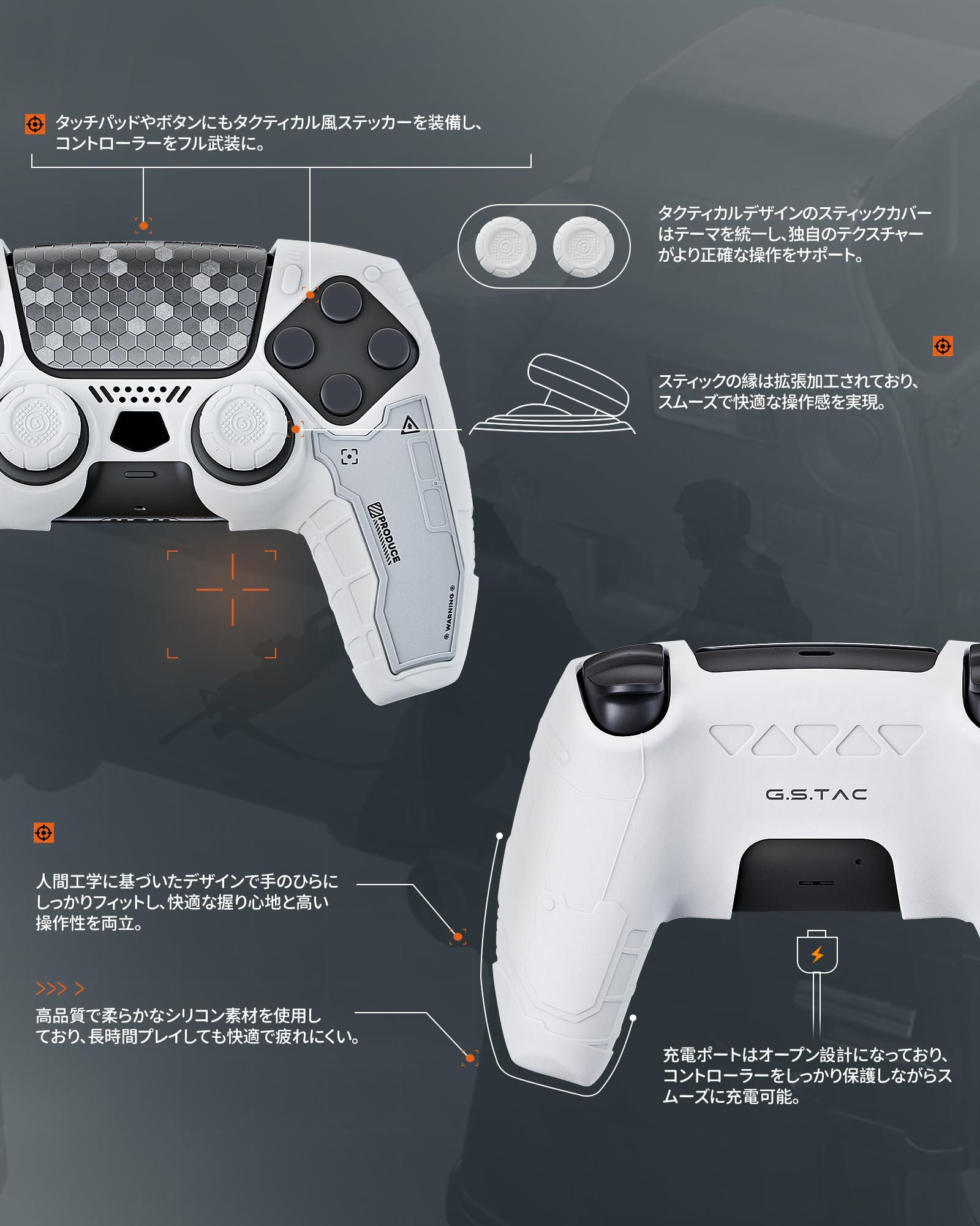 G.S.TAC PS5コントローラーカバー シリコン製 ソフト スキンケース プレイステーション5 コントローラー対応 PS5コントローラーカバー シール付け 保護カバー 保護ケース 耐衝撃 簡単装着 滑り止め ほこり防止 PS5保護カバー カッコいい 彼氏 彼女 男の子 プレゼント 記念日 誕生日 ギフト-先遣隊(8pcsセット) (ホワイト)