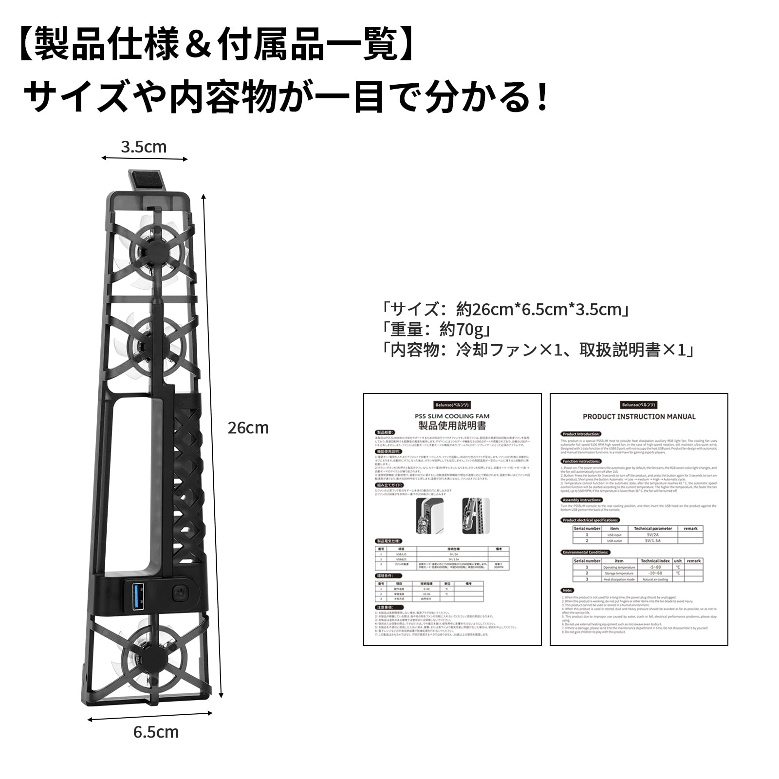 * 【 PS5 Slim/Pro 専用設計 & 広範な互換性】 PS5 Slim(ディスク版/デジタル版)およびPS5 Proに完全対応した専用冷却ファン。縦置き・横置きの両方の設置方法をサポートし、いかなる設置環境でも安定して強力な冷却効果を発揮します。※2020年発売の旧型PS5(オリジナルモデル)には対応しておりませんので、ご注意ください。