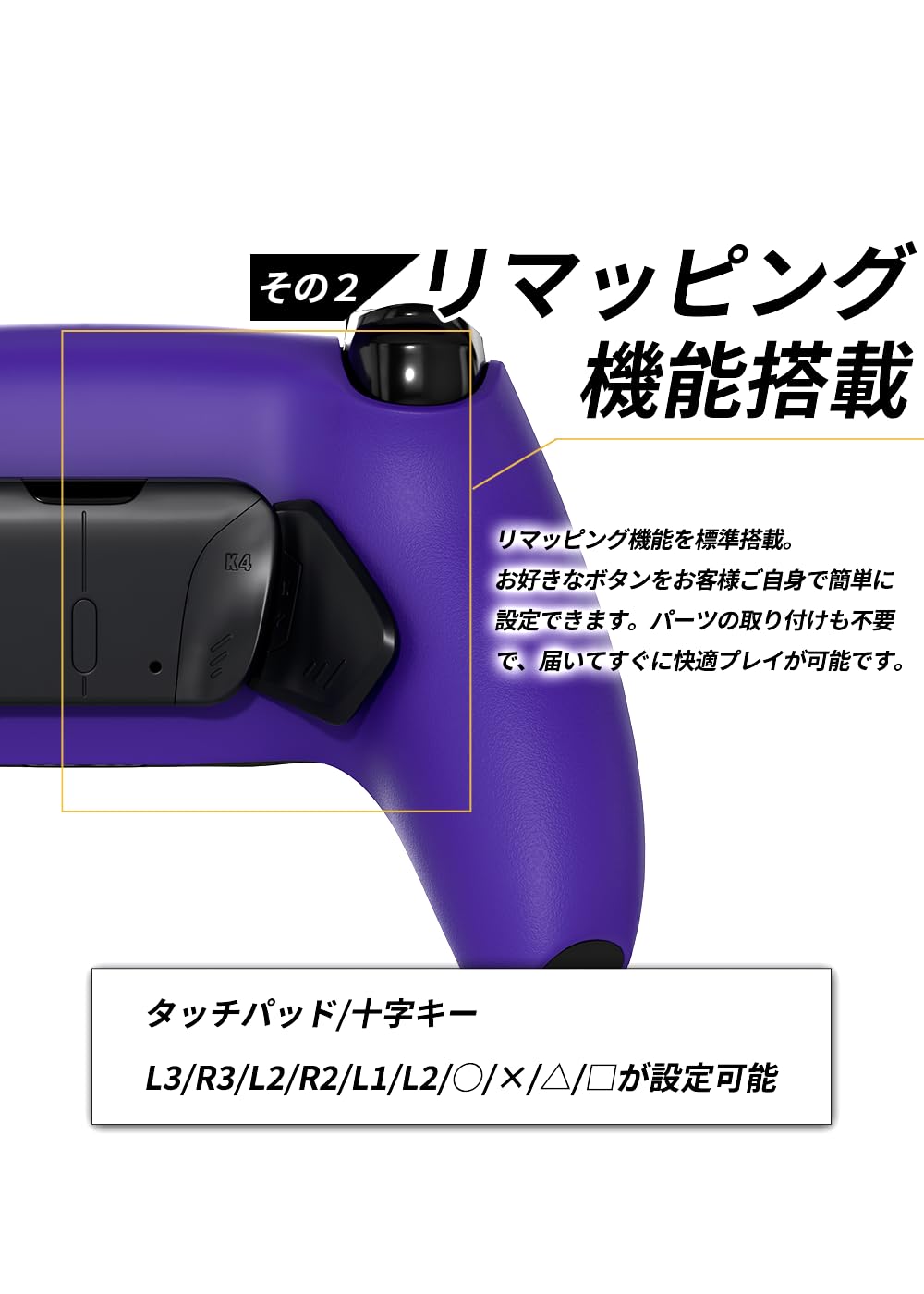 【MERKA.G】カスタムコントローラー PS5 互換品 PC 対応 背面パドル 付き リマッピング機能 軽量タイプ FPSに最適 (パープル, 背面4)