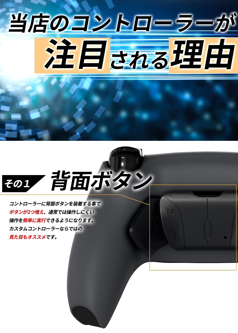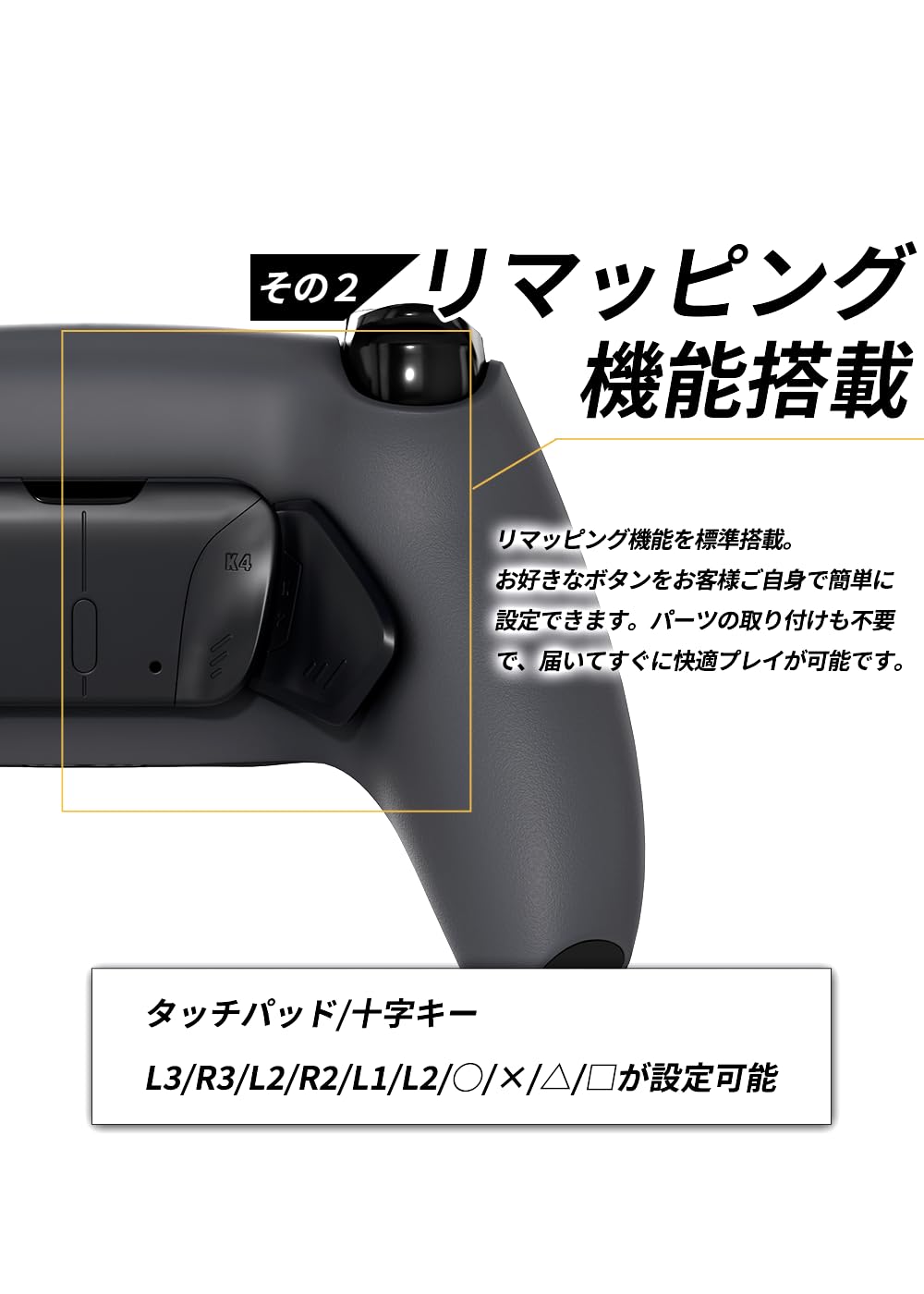 * 【リマッピング機能対応】背面ボタンへの割り当ては自由に変更可能。プレイスタイルに合わせて自分好みの操作設定ができます。