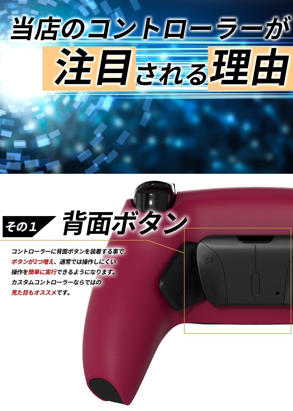 * 【リマッピング機能対応】背面ボタンへの割り当ては自由に変更可能。プレイスタイルに合わせて自分好みの操作設定ができます。