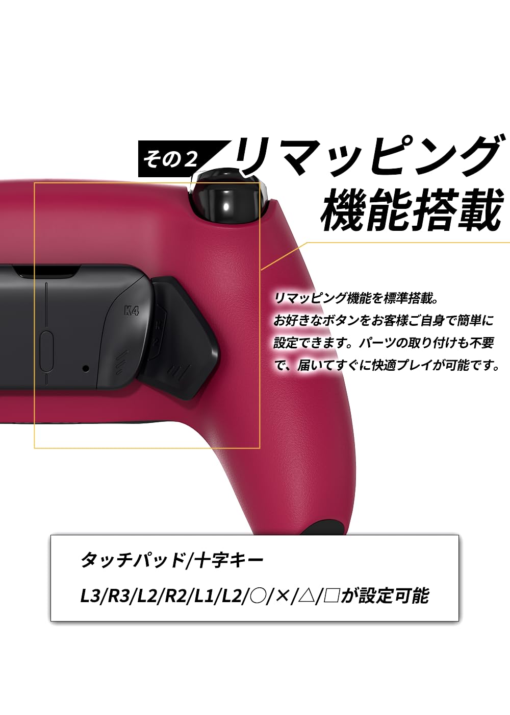 【MERKA.G】カスタムコントローラー PS5 互換品 PC 対応 背面パドル 付き リマッピング機能 軽量タイプ FPSに最適 (レッド, 背面4)
