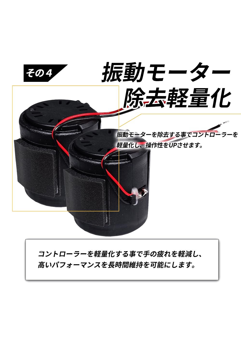 * 【軽量設計(振動機能除去)】振動ユニットを搭載していないため、本体が軽量化され、長時間のプレイでも疲れにくく快適な操作性を保てます。