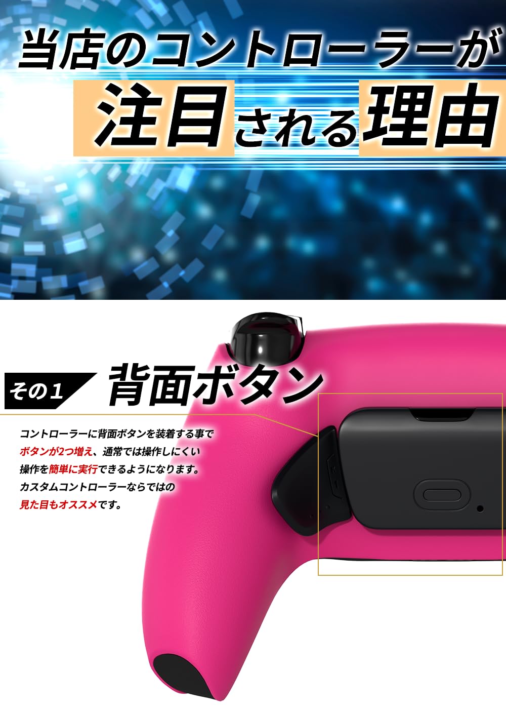 【MERKA.G】カスタムコントローラー PS5 互換品 PC 対応 背面パドル 付き 高速クリックトリガー&バンパー リマッピング機能 軽量タイプ FPSに最適 (ピンク, 背面2)