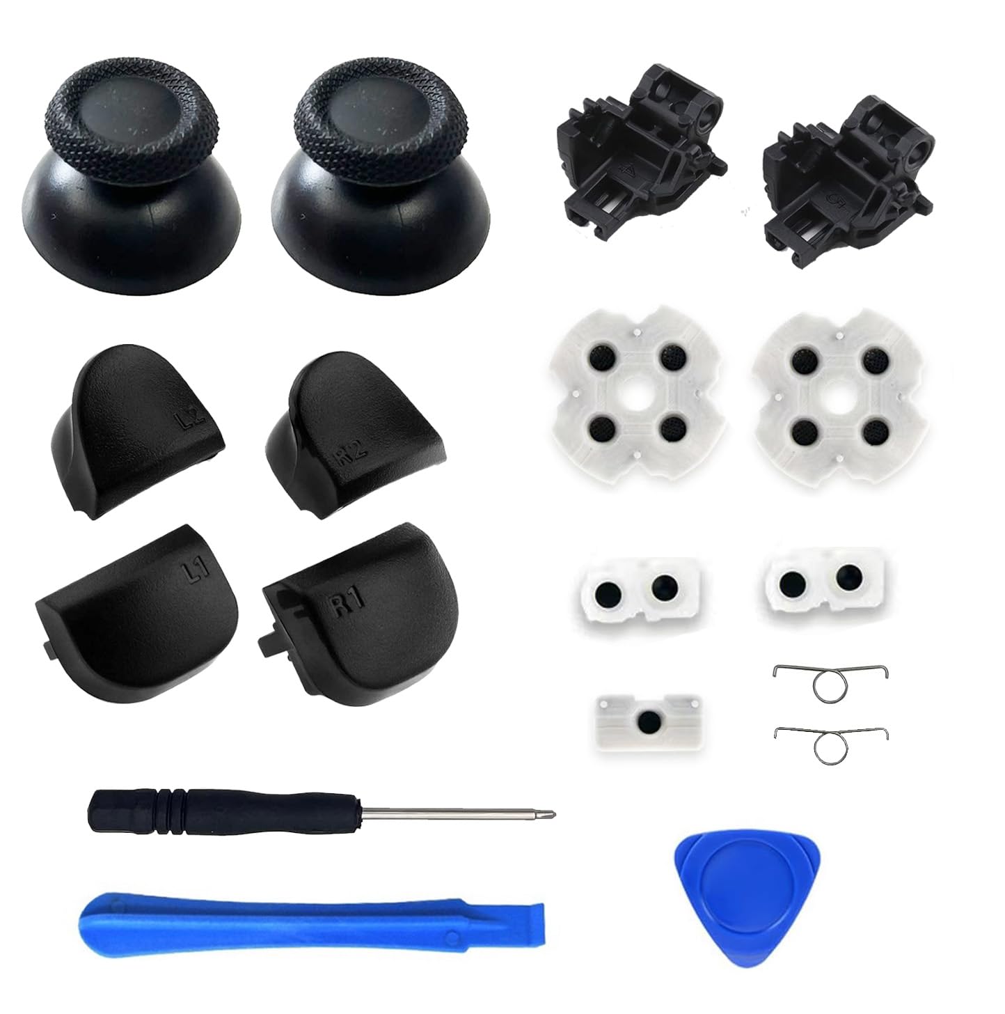 (18in1)PS5 コントローラー 修理 ps5 コントローラー 修理キット ps5 コントローラー ゴム 交換 導電性 L1 L2 R1 R2 トリガー ブラック スプリング付き 互換部品PS5コントローラー交換用ボタン