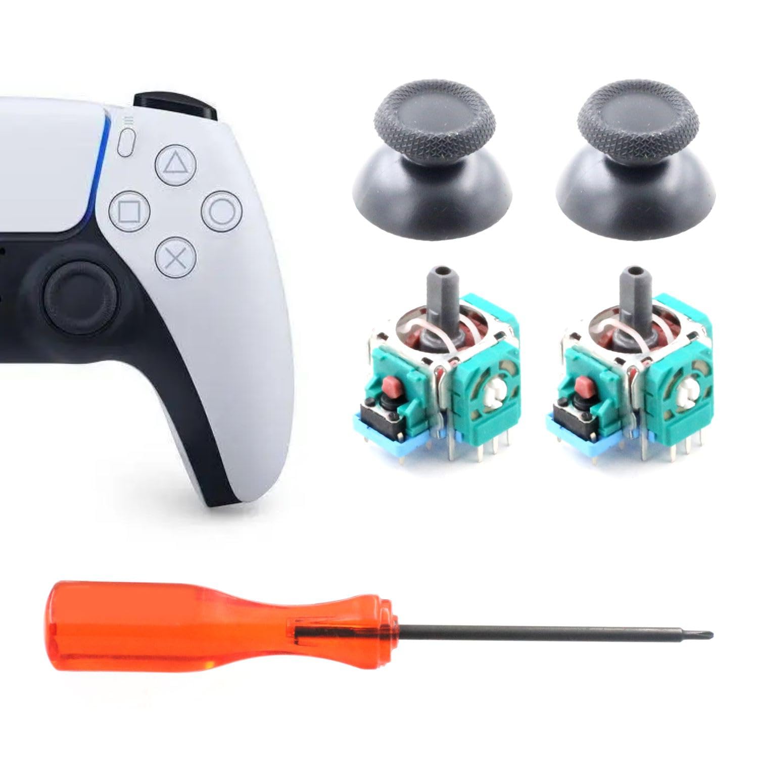 KKLM PS5 コントローラー用 7点セット修理キット 3Dスティックモジュール センサー付き 交換用ジョイスティック プレイステーション5対応 修復ツール付き