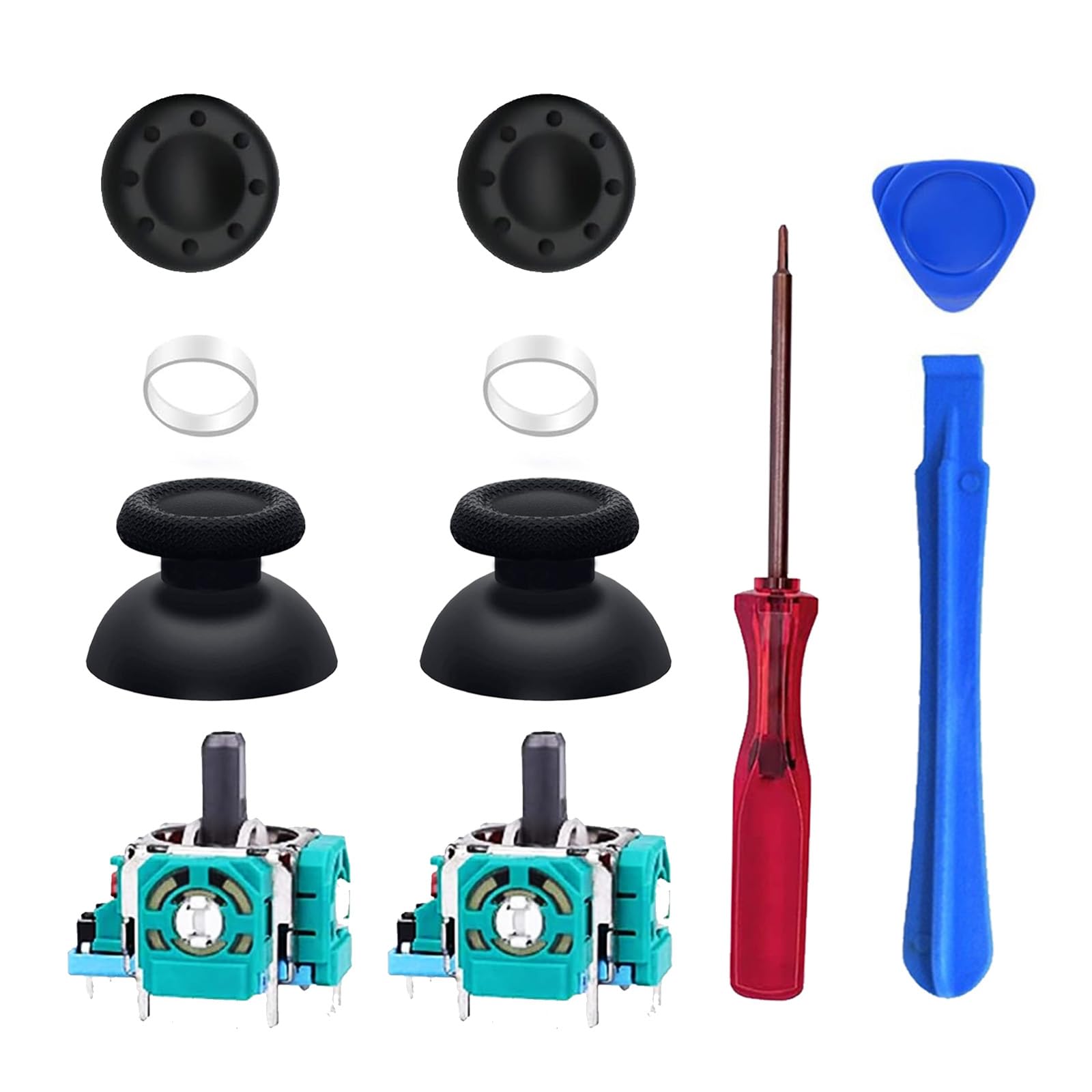 * 【パッケージ内容】3Dアナログスティック×2、アナログスティックキャップ×2、保護リング×2、滑り止めゲーミングサムグリップキャップ×2、プラスドライバー×1、スパガー×1、三角栓抜き×1。