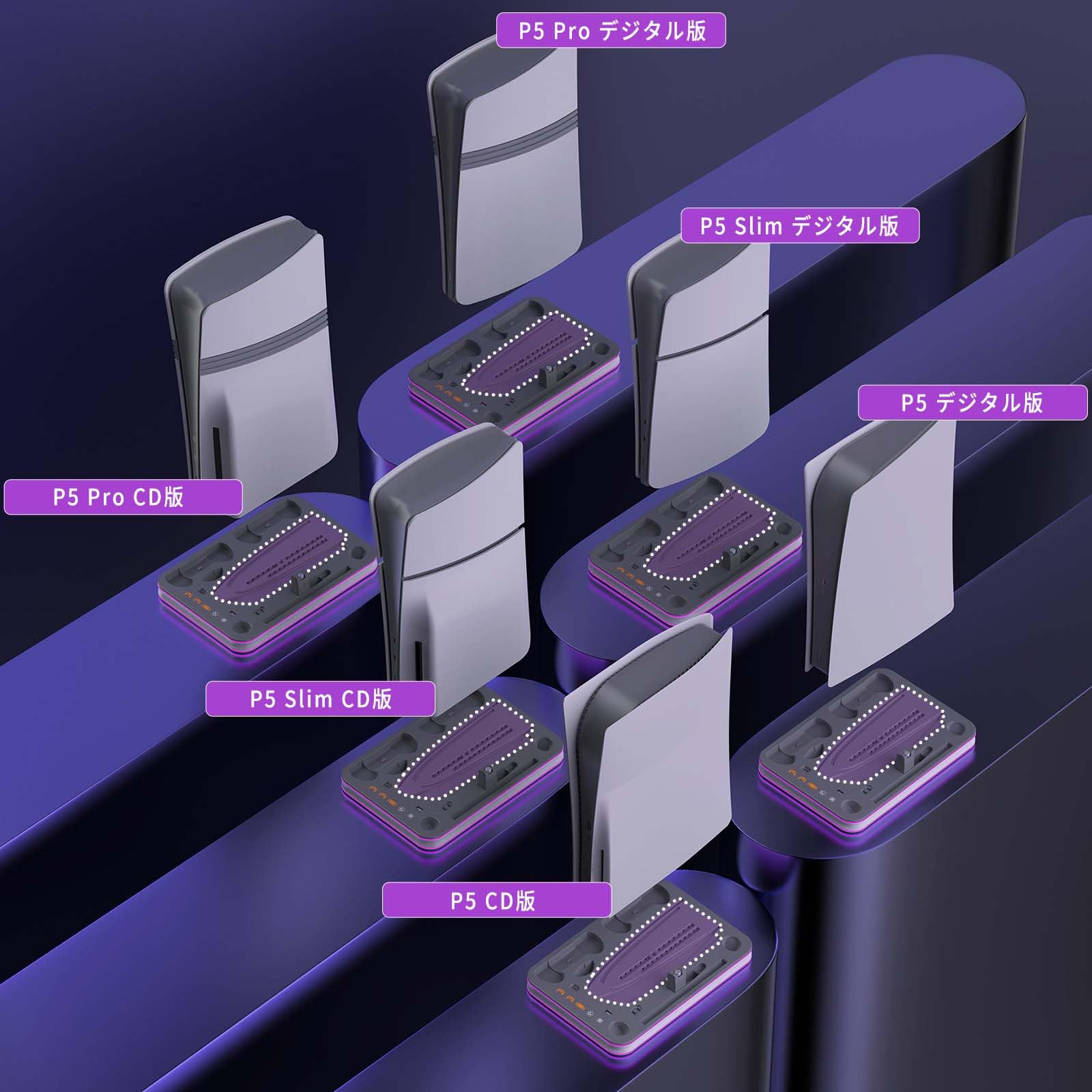 * 【新型PS5 Slim/旧型PS5/PS5 Pro対応機種】:2023新型PS5 Slim/PS5 Proと2020旧型PS5の通常版とデジタル両方と互換性があります。本製品はPS5/PS5 Slim/PS5 Pro UHD/デジタル版の四つの機種に特別に設計されたフェイスプレートで、よりスムーズなゲーム体験をもたらすように設計された多機能縦型冷却スタンドです。PS5本体放熱、二つコントローラー充電可能、PS Portal リモートプレーヤー 同時充電可能。LEDインジケーターにより、充電状態を一目で確認することができます。橙色のライトは充電中を示しています、青色のライトはスタンバイ/充電完了を示します。