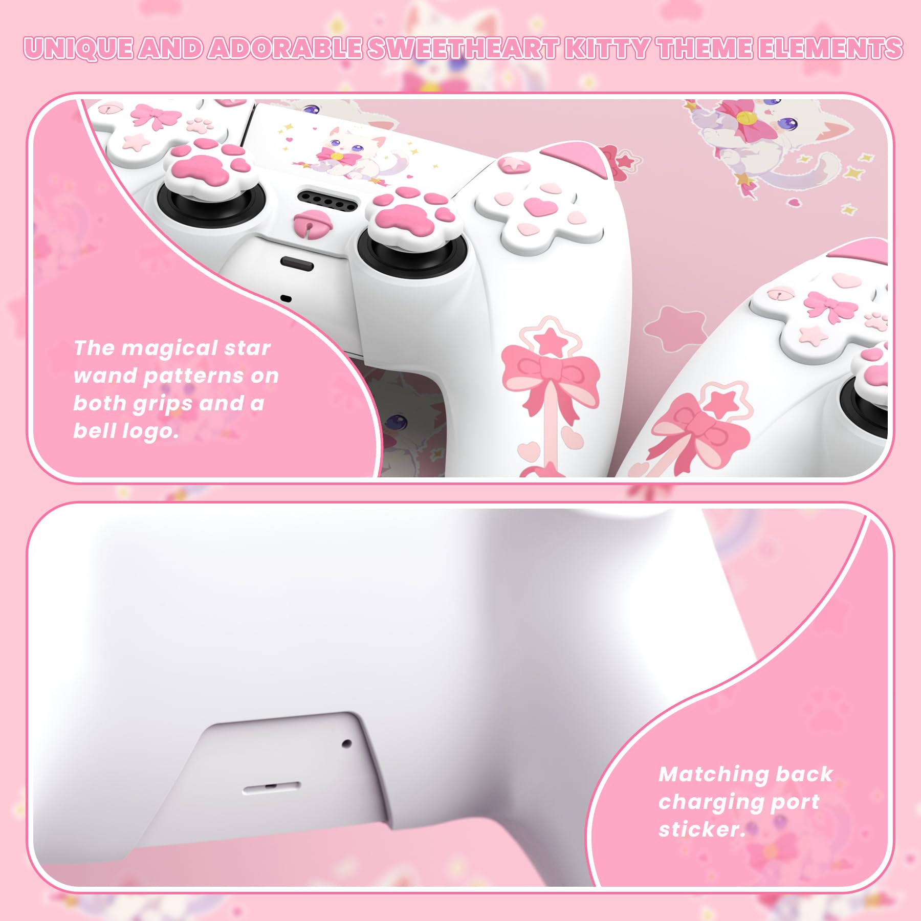 PlayVital Sweetheart Kitty ps5コントローラー対応用シリコン保護カバー、ジョイスティックキャップやステッカー付属、滑り止めグリップは公式の充電ドックにも適用-ホワイト
