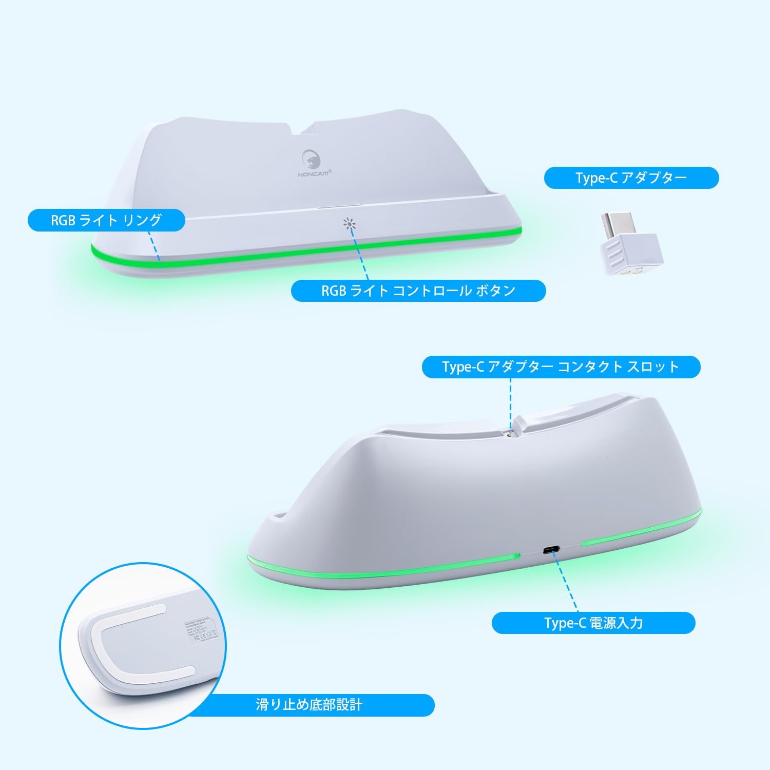 * コンパクトでスタイリッシュなデザイン: スタイリッシュでモダンなデザインの充電ステーションは、どんなゲーム環境にもマッチします。コンパクトな形状なので、デスクやゲームステーション、リビングルームなど、どこにでも簡単に配置でき、スタイリッシュな雰囲気をプラスします。