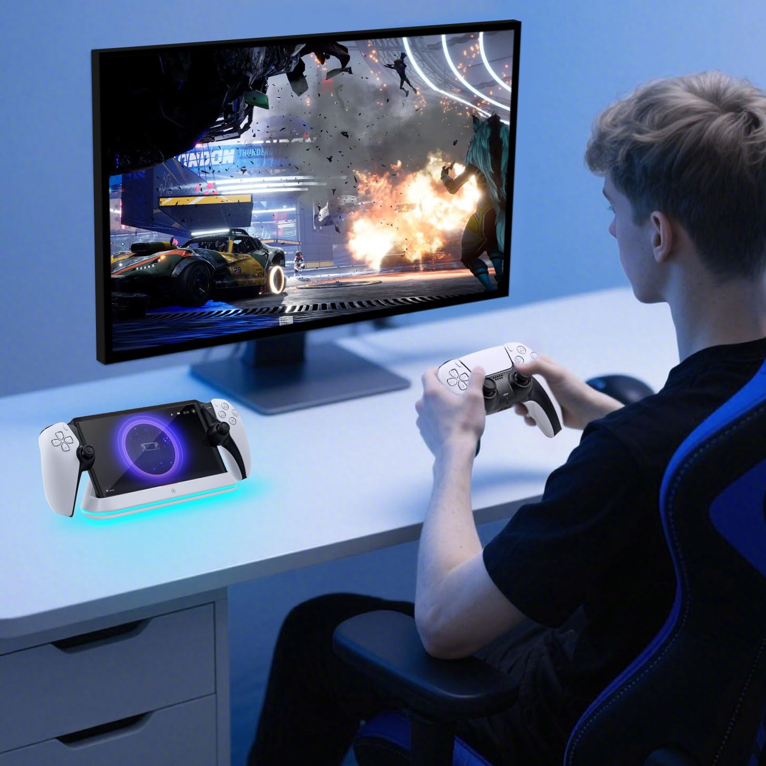 Mcbazel PS Portal用 マグネット式 LED充電スタンド Type-C搭載 急速充電 過充電防止 過充電保護 取付簡単 PS5ポータブルリモートプレーヤー用 収納便利 省スペース - ホワイト