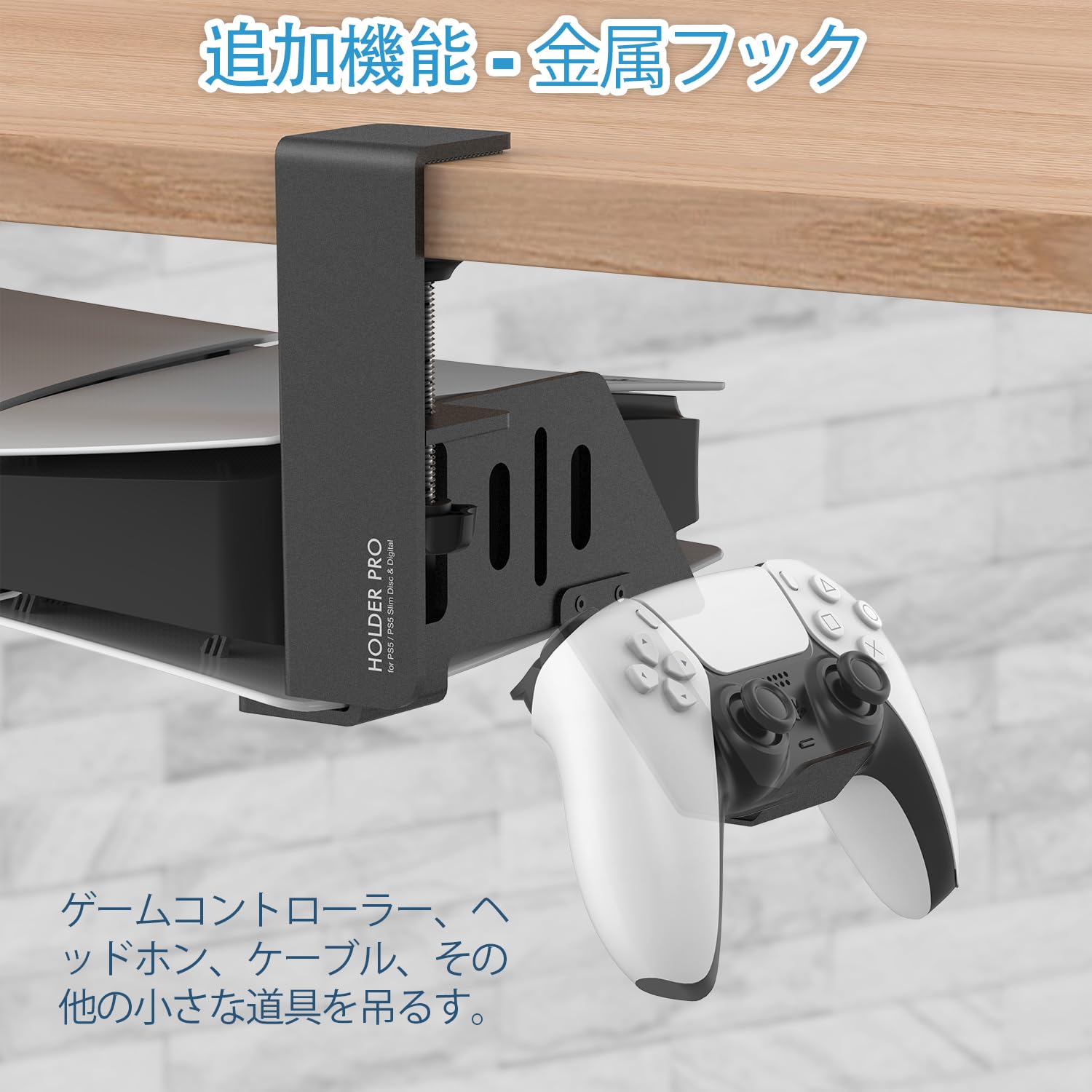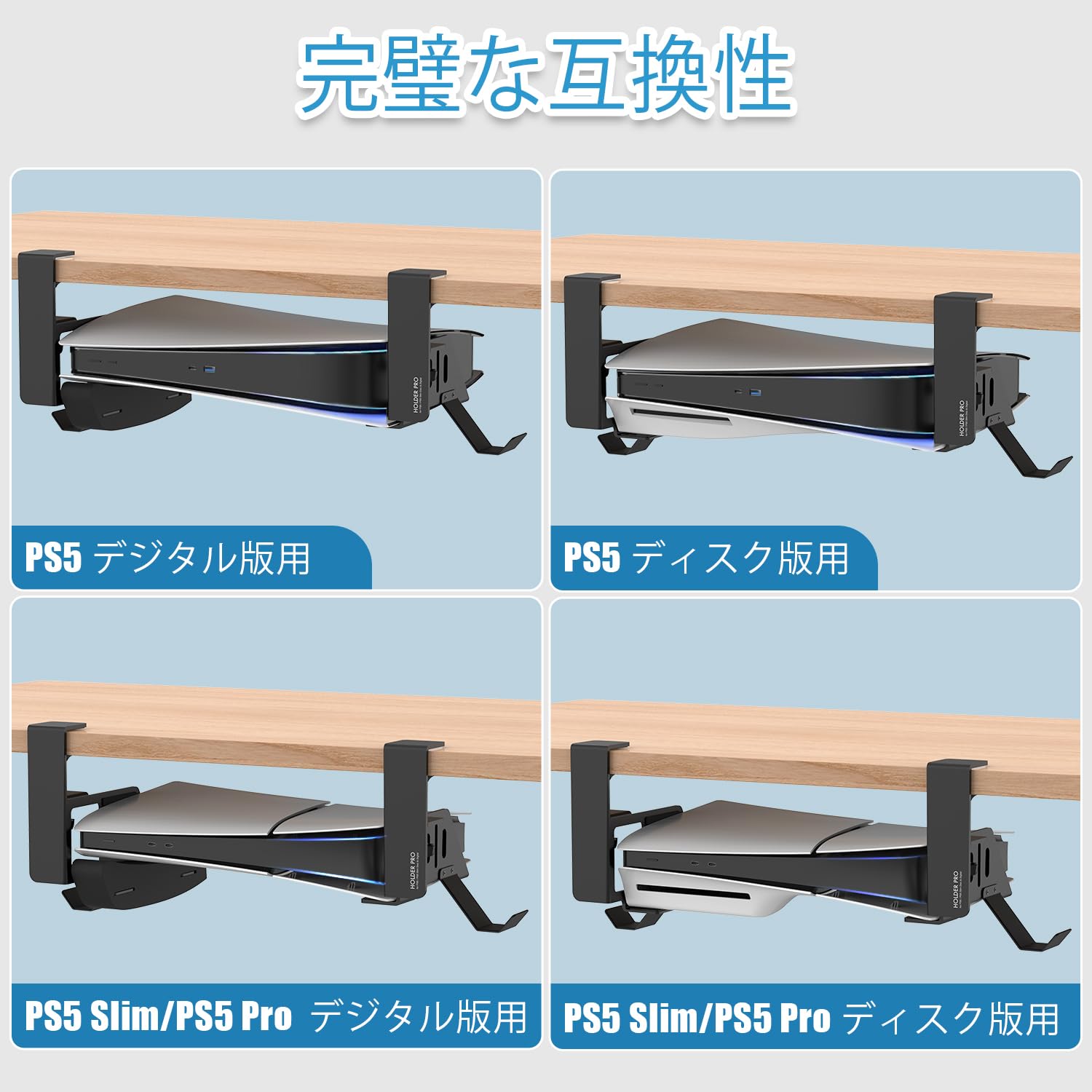 JUSPRO PS5 用卓下取り付けマウントホルダーアクセサリー PS5 Pro/Slim/ディスク版およびデジタル版コンソールに対応