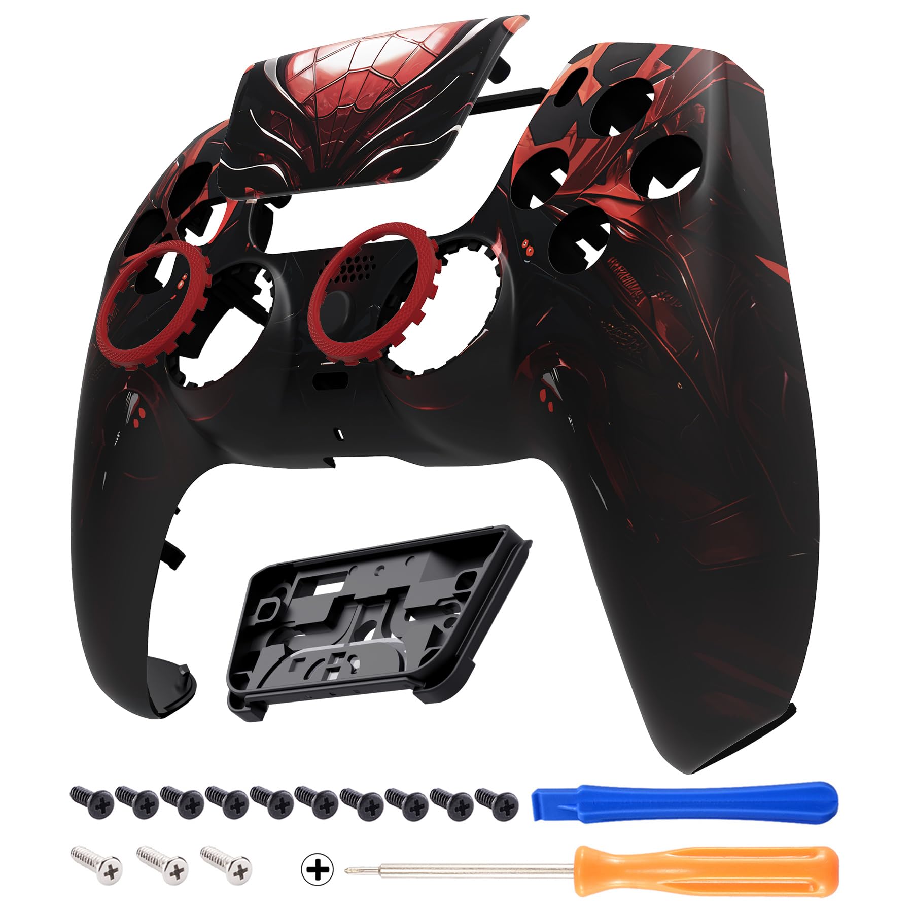 eXtremeRate LUNA ps5コントローラー(BDM-010&BDM-020&BDM-030&BDM-040&BDM-050)に対応用交換フロントシェルやタッチパッド、パターン柄DIY交換ハウジングシェルタッチパッドカバー「マシンスパイダー」