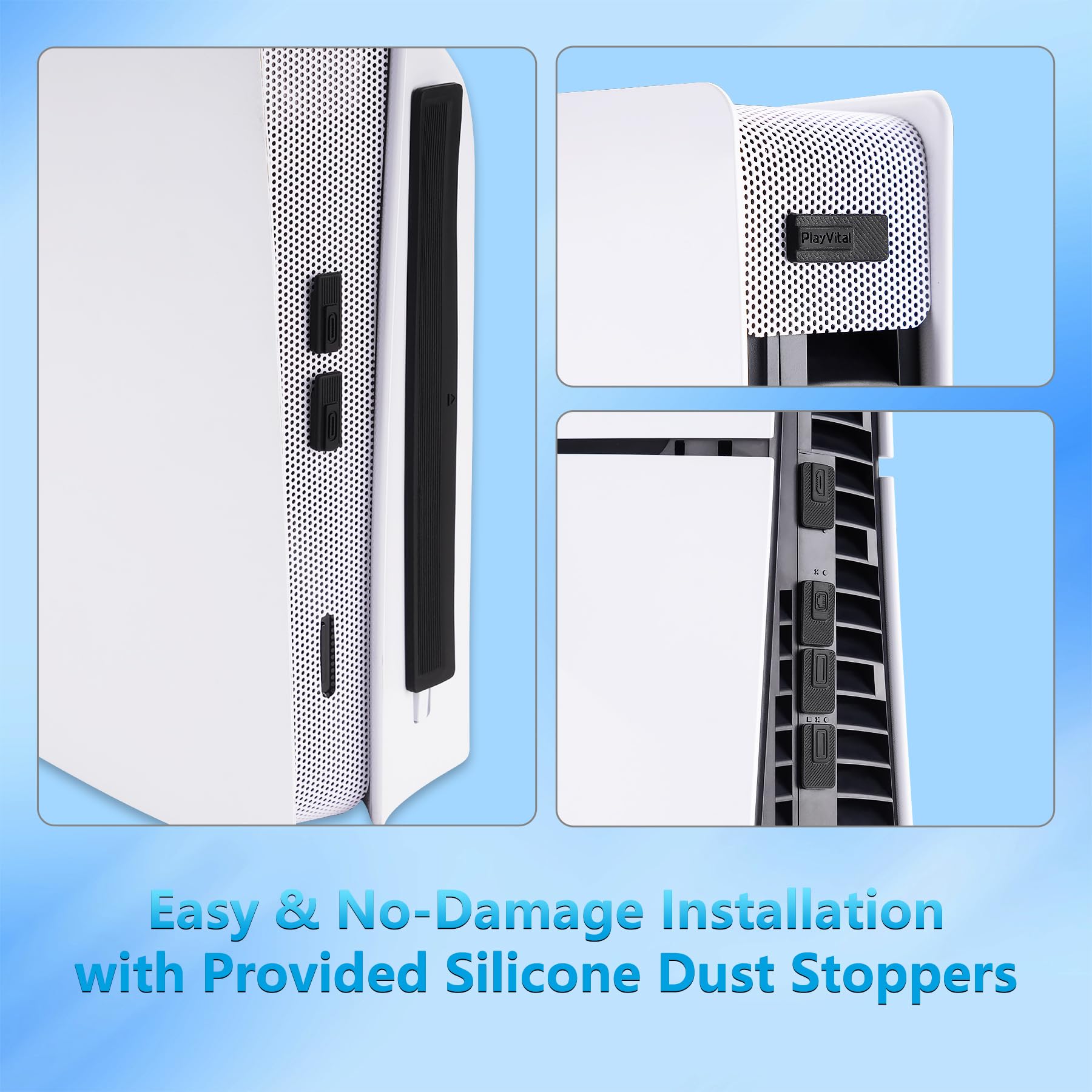 * 簡単&ダメージなしの取り付け:専用のシリコン製防塵ストッパーが付属しており、取り付けにネジは不要。ps5 Slimに簡単でダメージのない設置が可能です。