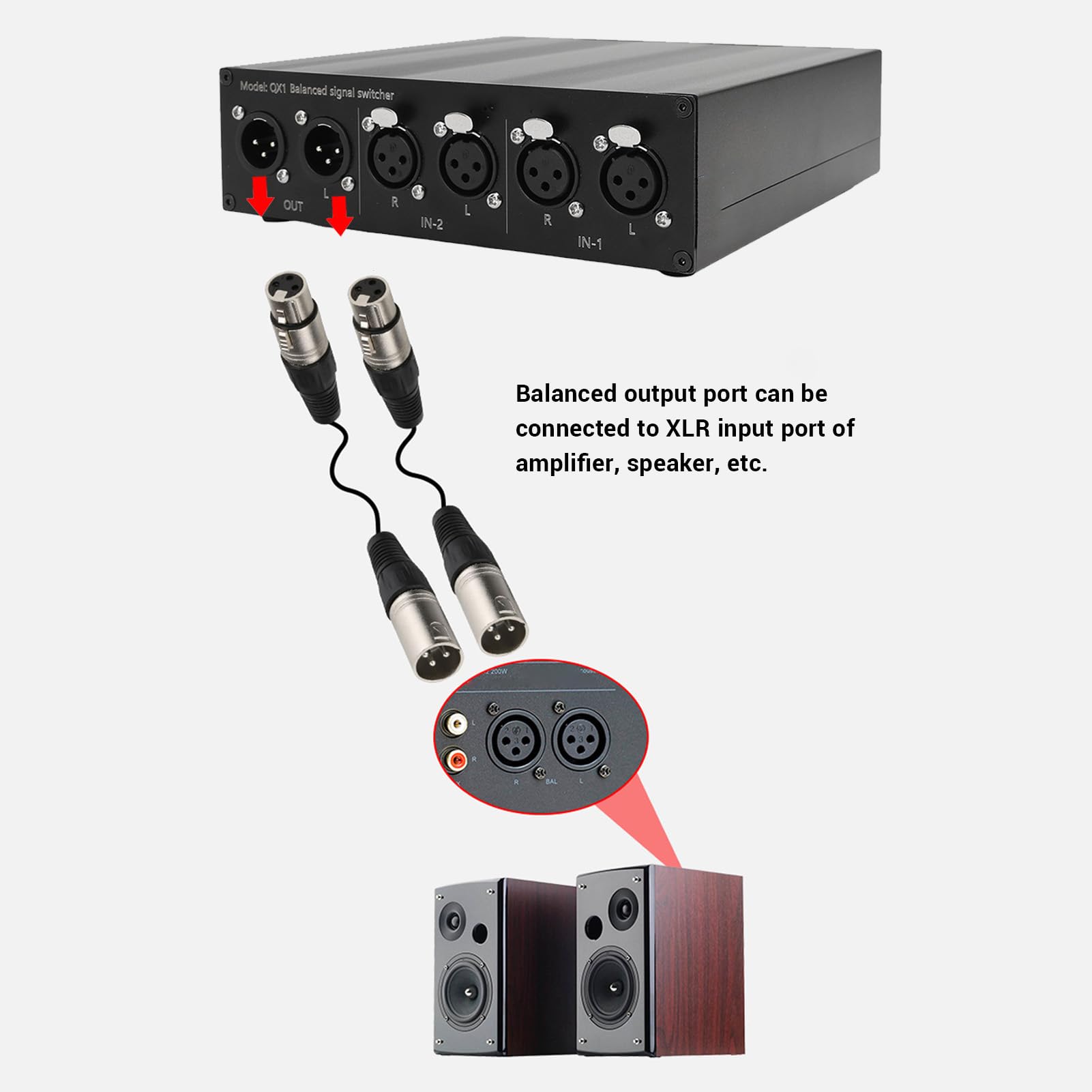 スピーカースイッチセレクター、XLR 2イン1アウトオーディオスイッチャーアルミ合金オーディオスイッチセレクターボックス、ラップトップコンピュータ、スマートフォン、タブレット用