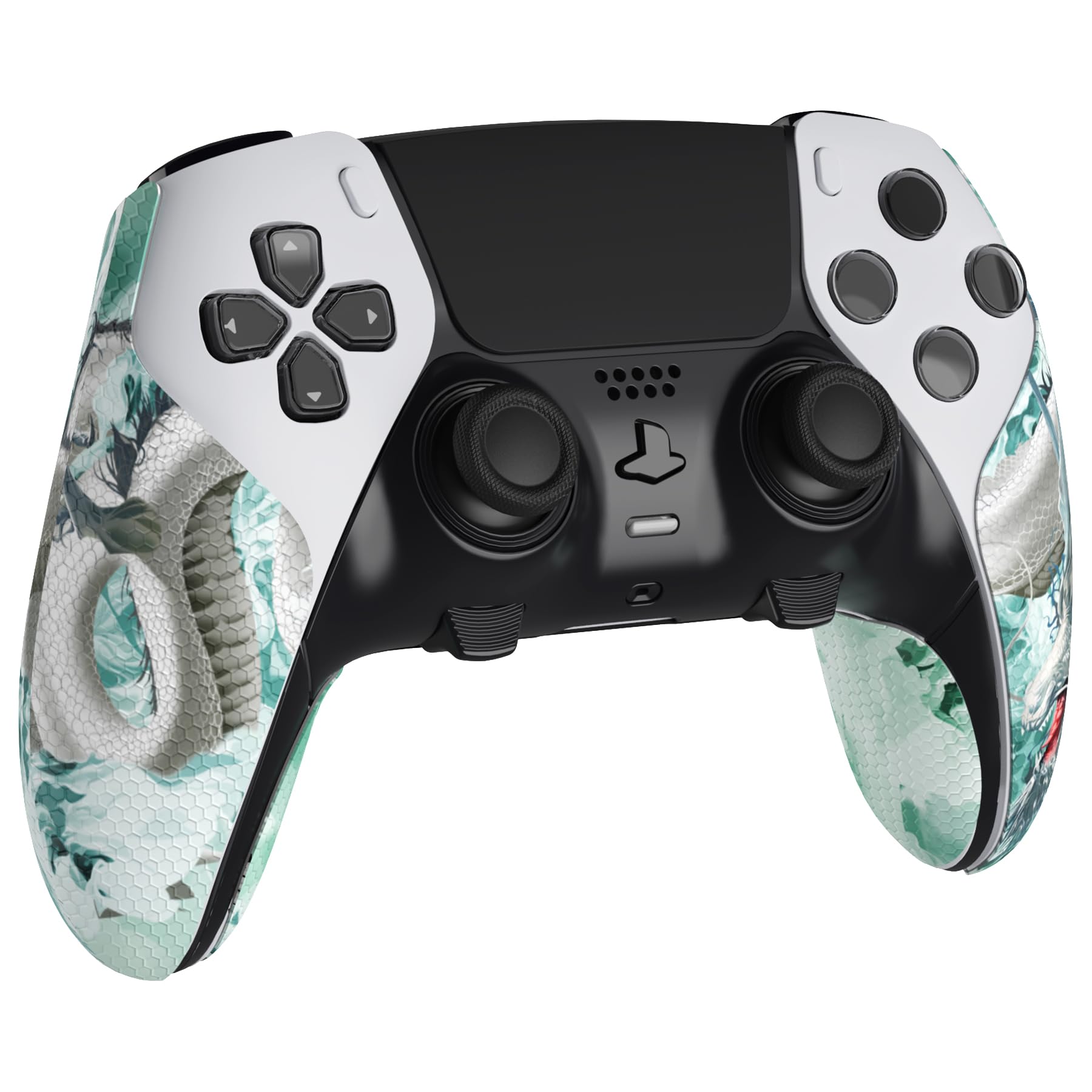 PlayVital ps5 Edgeコントローラーに対応用滑り止め汗吸収グリップステッカー、ps5 edgeコントローラーに対応するプロなテクスチャード加工のソフトPUハンドルグリップステッカー【翡翠のドラゴン】