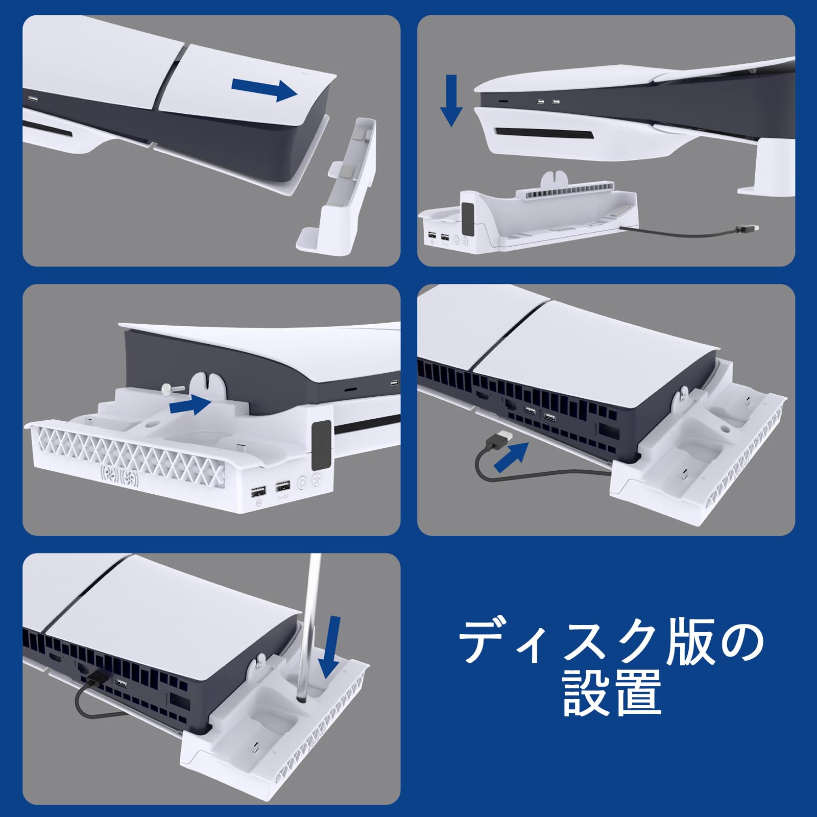 * 【放熱改善】PS5 slim/Ps5 pro用本体を横に置きして、放熱穴は底から側に変わって、下に隙間空くんで空冷感がまして、放熱穴は底から側に変わって、同時に、放熱ファンが付属し、放熱を加速させることができる、熱がこもりにくく、効率よく内部の熱を側から外へ排出、本体の使用寿命は大幅アップします。