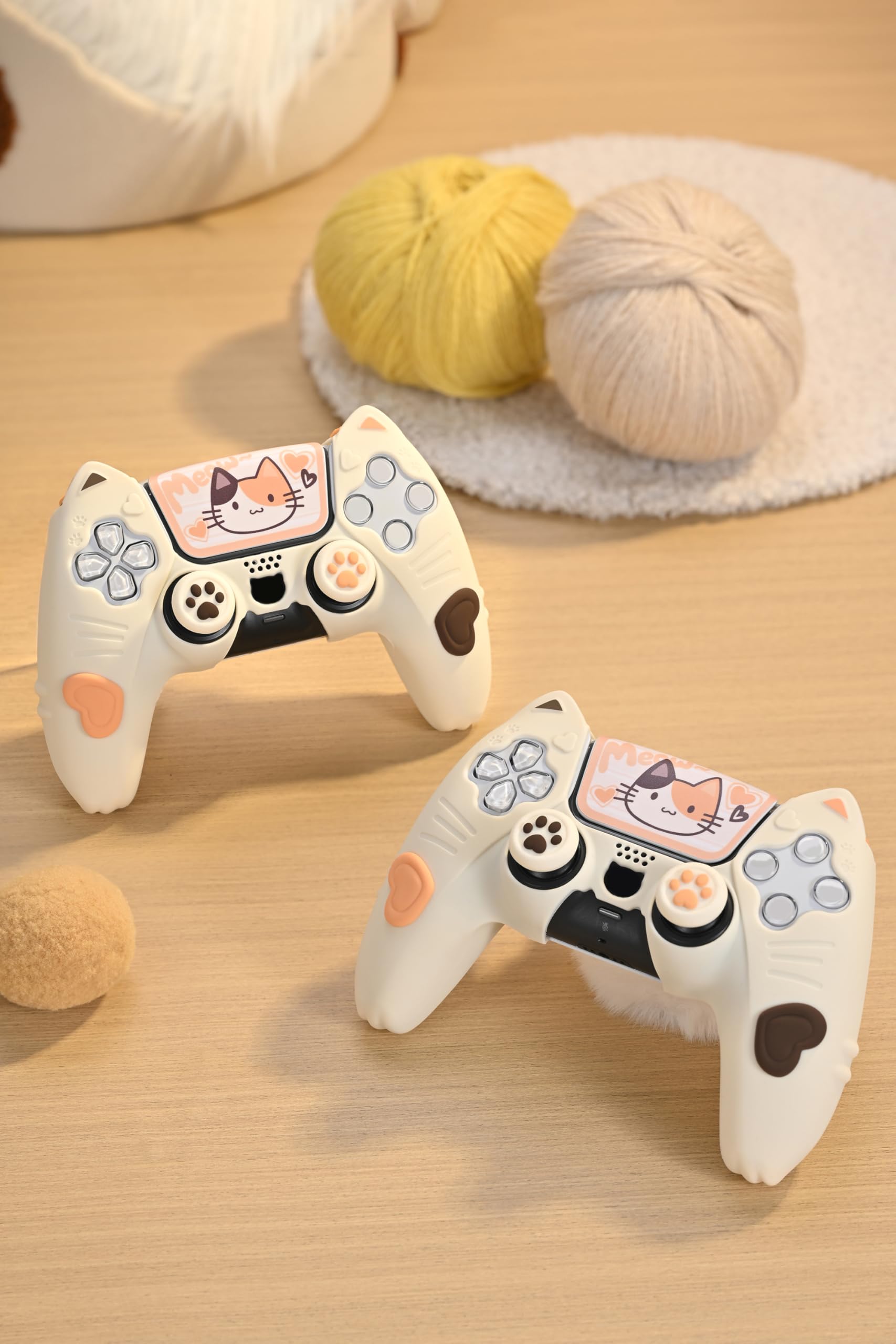 GeekShare PS5コントローラーカバー シリコン製 ソフト スキンケース プレイステーション5 コントローラー対応 PS5コントローラーカバーとシール付け 保護カバー 保護ケース 耐衝撃 簡単装着 滑り止め ほこり防止 PS5保護カバー かわいい みけ猫 ホワイトとブラウン