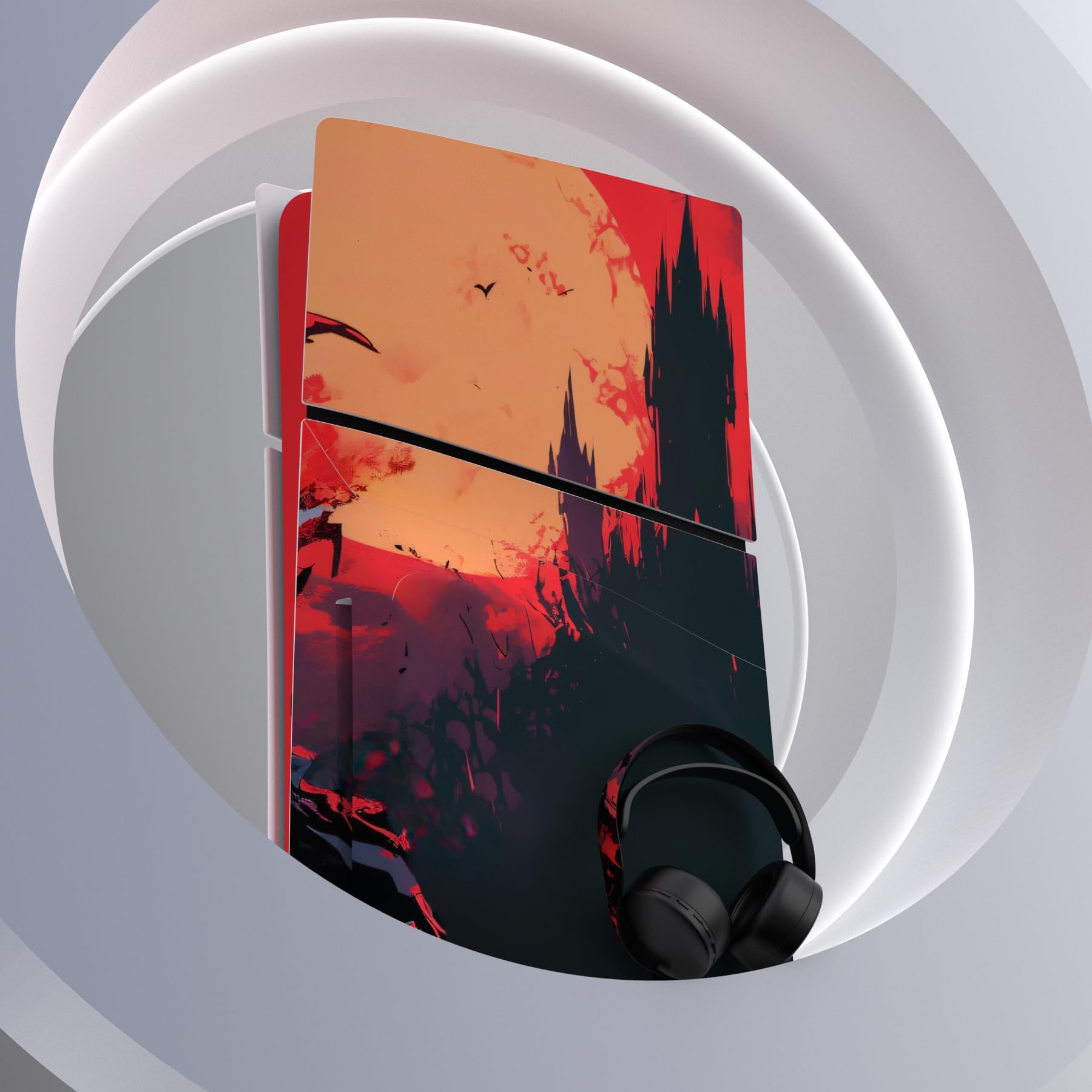 PlayVital 新モデルps5 Slim本体ディスクバージョンに対応用スキンシール、ps5ヘッドセット&充電ステーション&リモコンに対応用スキンシール、ps5コントローラーに対応用スキンステッカー【月光のホラー】