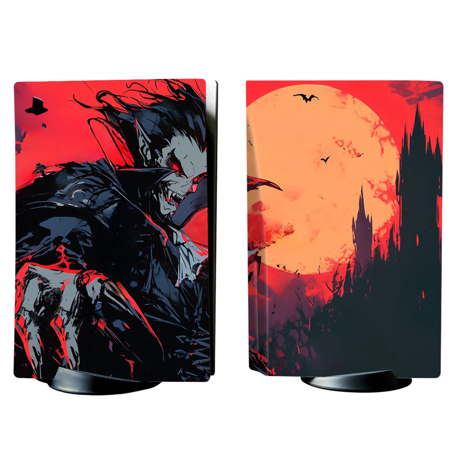 PlayVital ps5コンソール本体(ディスクバージョン)に対応用ステッカーシール、ps5コントローラー&ヘッドセット&リモコン&充電ステーションに対応するステッカービニールシール【月光のホラー】
