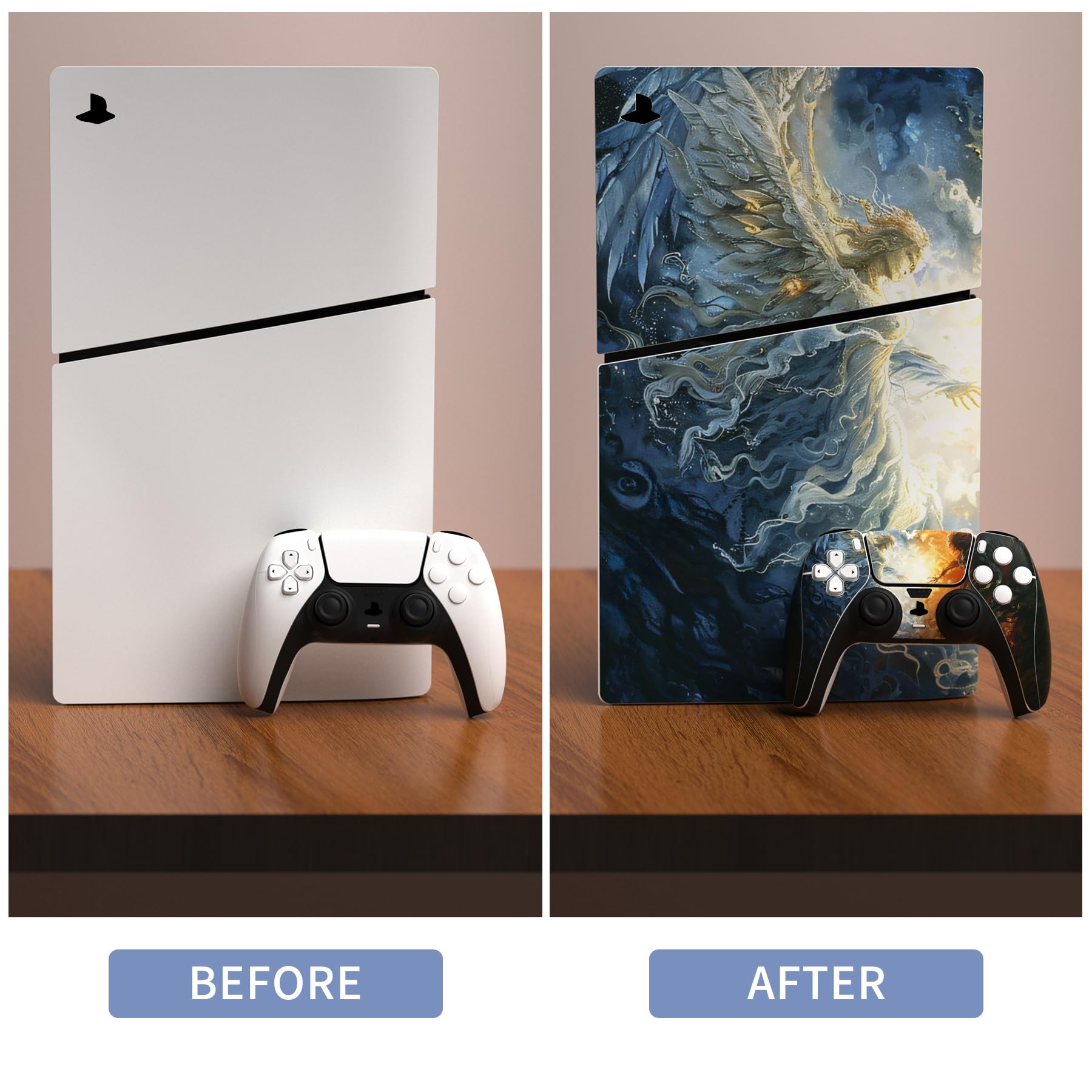 * ps5 Slim本体(新モデル)ディスクバージョンに対応用スキンシール、コントローラー、充電ステーション、ヘッドセットやリモコンに対応用スキンシール。他のコントローラーに対応しません。