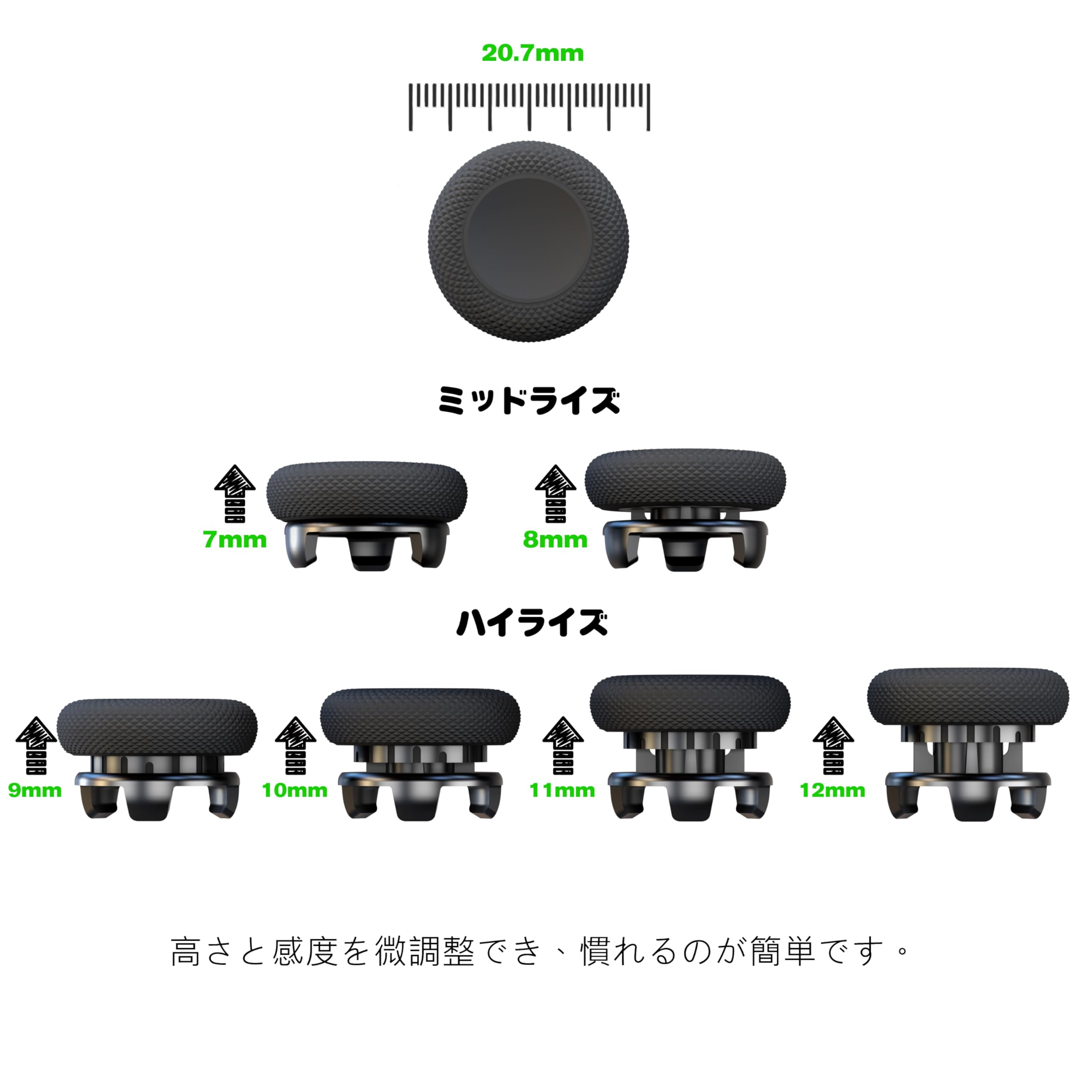 * より多くの選択: 中間の高さのサムフリークを7mm、8mm、高さのサムフリークを9mm、10mm、11mm、12mmの公称高さに調整でき、より良い適応が可能。