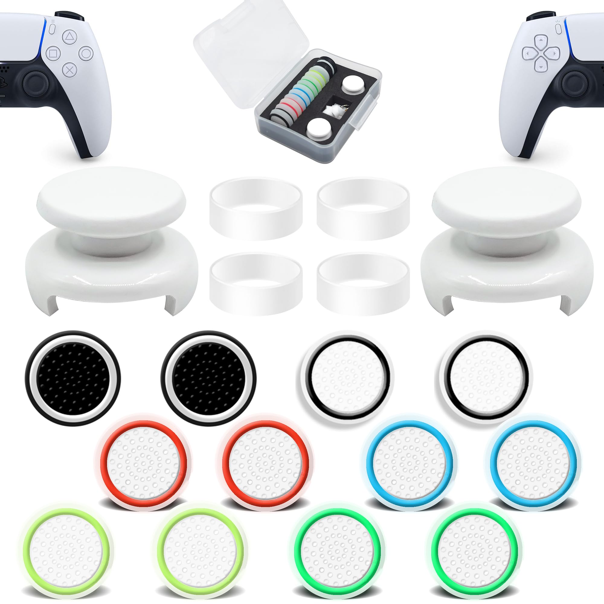 ZHI-NYLLDJS フリーク PS5対応 PS4対応 コントローラー スティック カバー コントローラー アシストリング 収納ケース付き(フリーク2個/スティック カバー12個/スティック保護リング4個)ホワイト (18個)セット