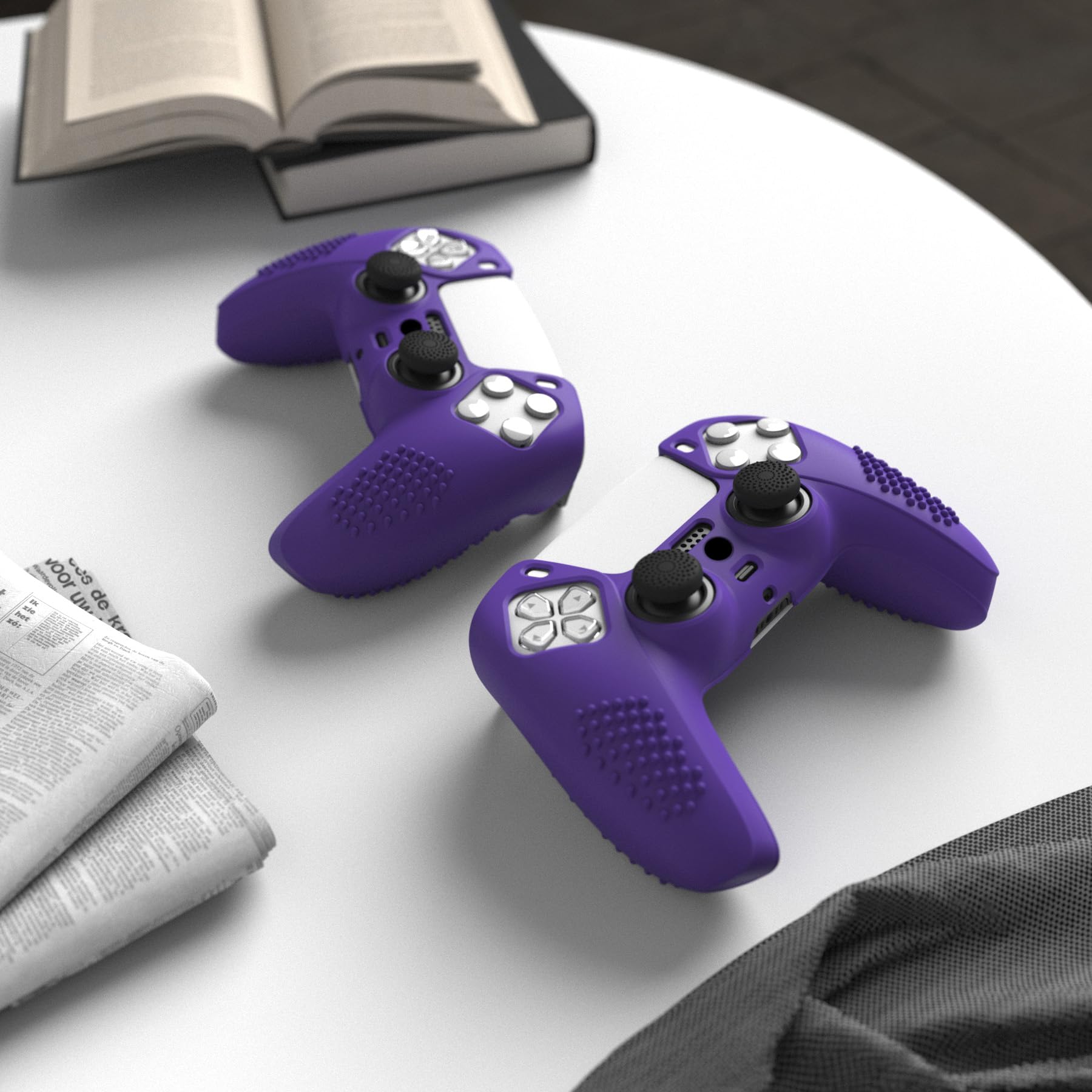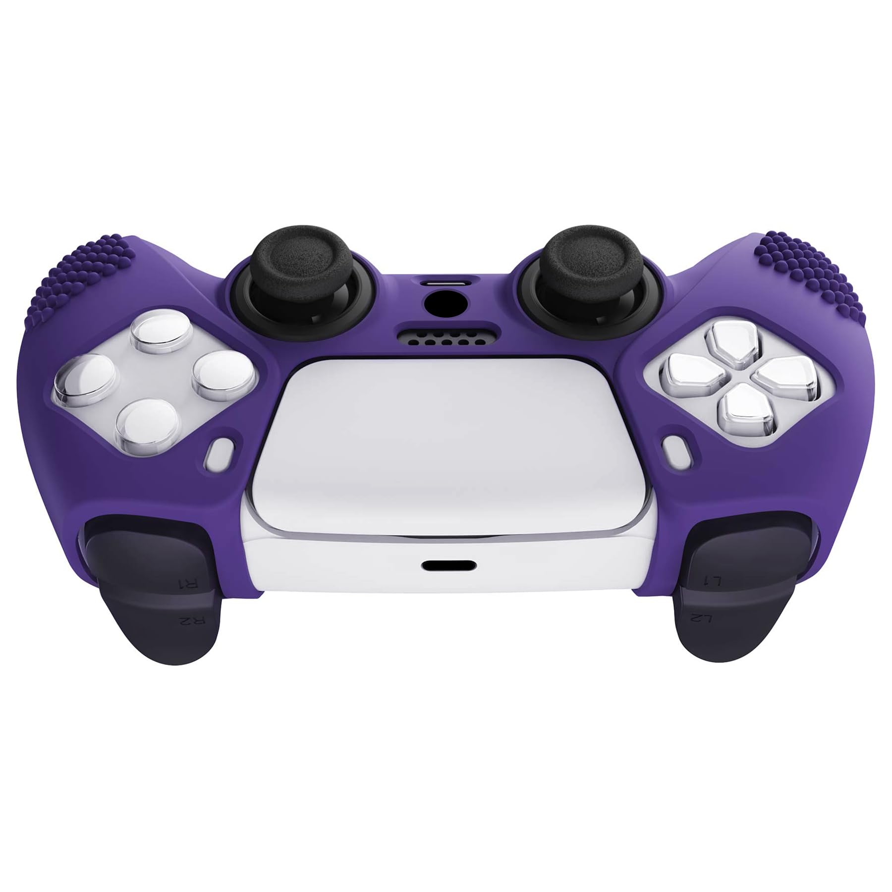 eXtremeRate PlayVital ps5コントローラーに対応用保護カバー、滑り止めシリコンスキンケースカバー、ps5コントローラー対応用人間工学に基づいたソフトラバー、保護ケース親指スティックキャップ付き【3Dスタッズエディション-パープル】