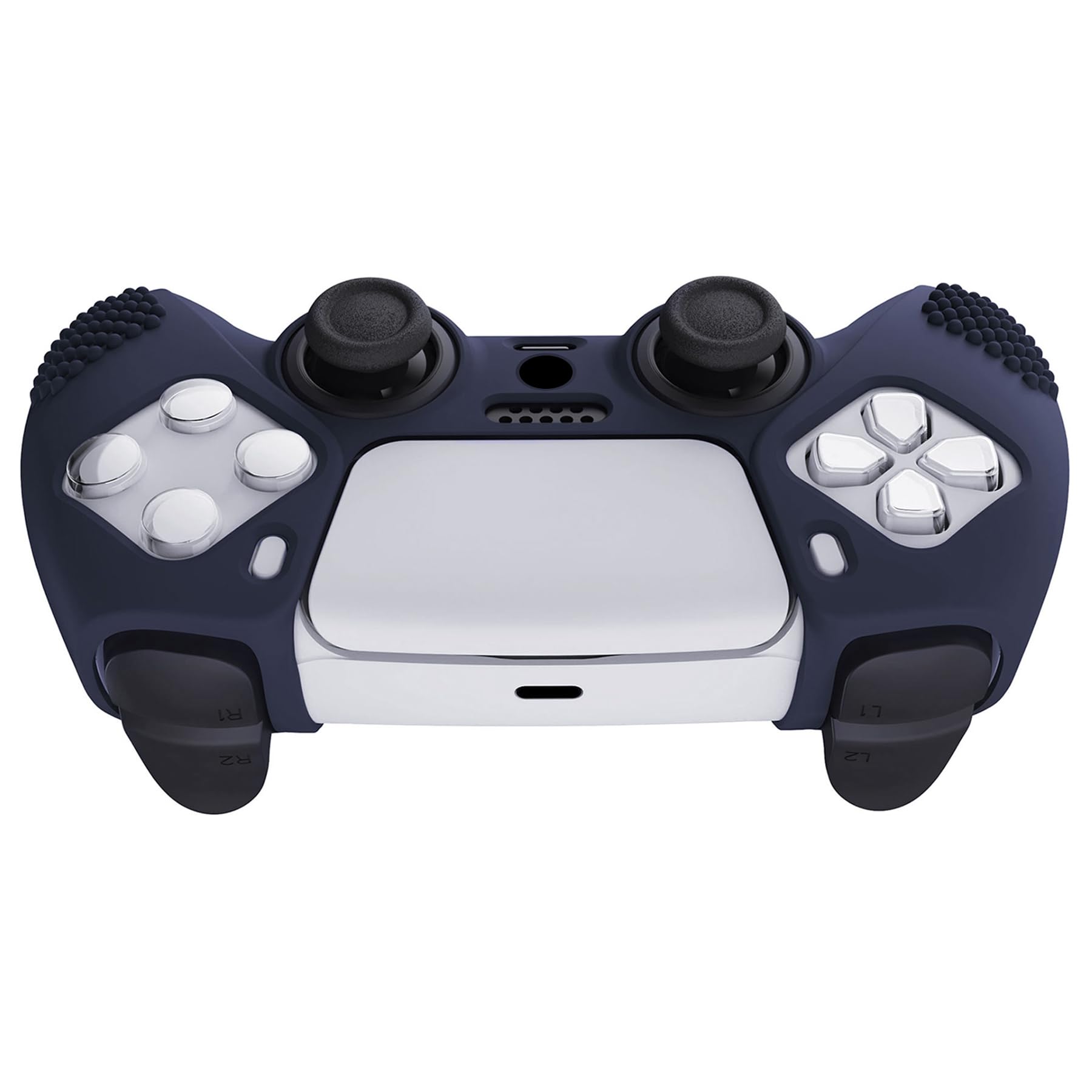 eXtremeRate PlayVital ps5コントローラーに対応用保護カバー、滑り止めシリコンスキンケースカバー、ps5コントローラー対応用人間工学に基づいたソフトラバー、保護ケース親指スティックキャップ付き【3Dスタッズエディション-ネイビーブルー】
