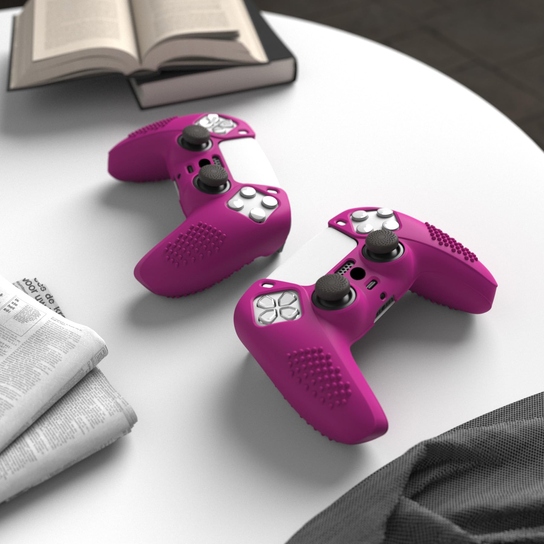 eXtremeRate PlayVital ps5コントローラーに対応用保護カバー、滑り止めシリコンスキンケースカバー、ps5コントローラー対応用人間工学に基づいたソフトラバー、保護ケース親指スティックキャップ付き【3Dスタッズエディション-クリムソン】