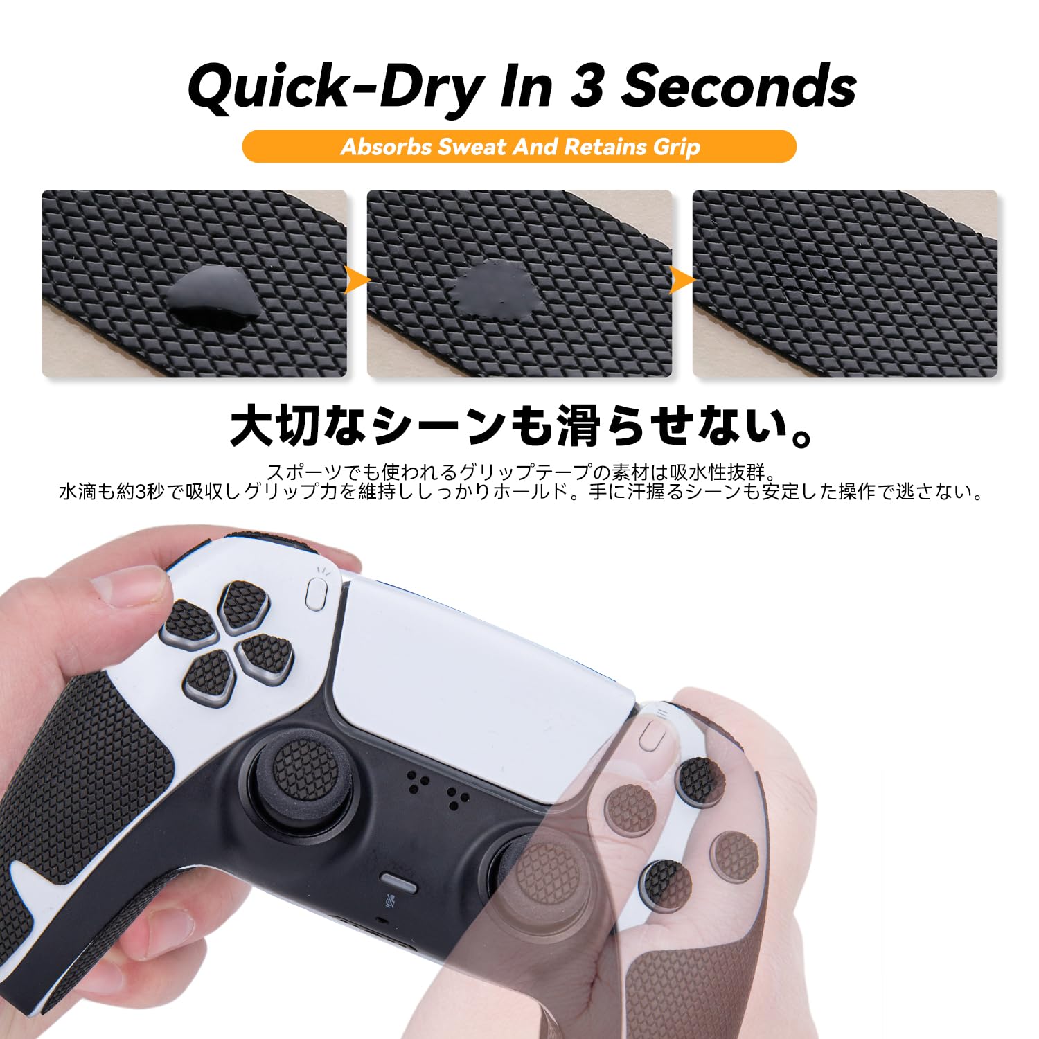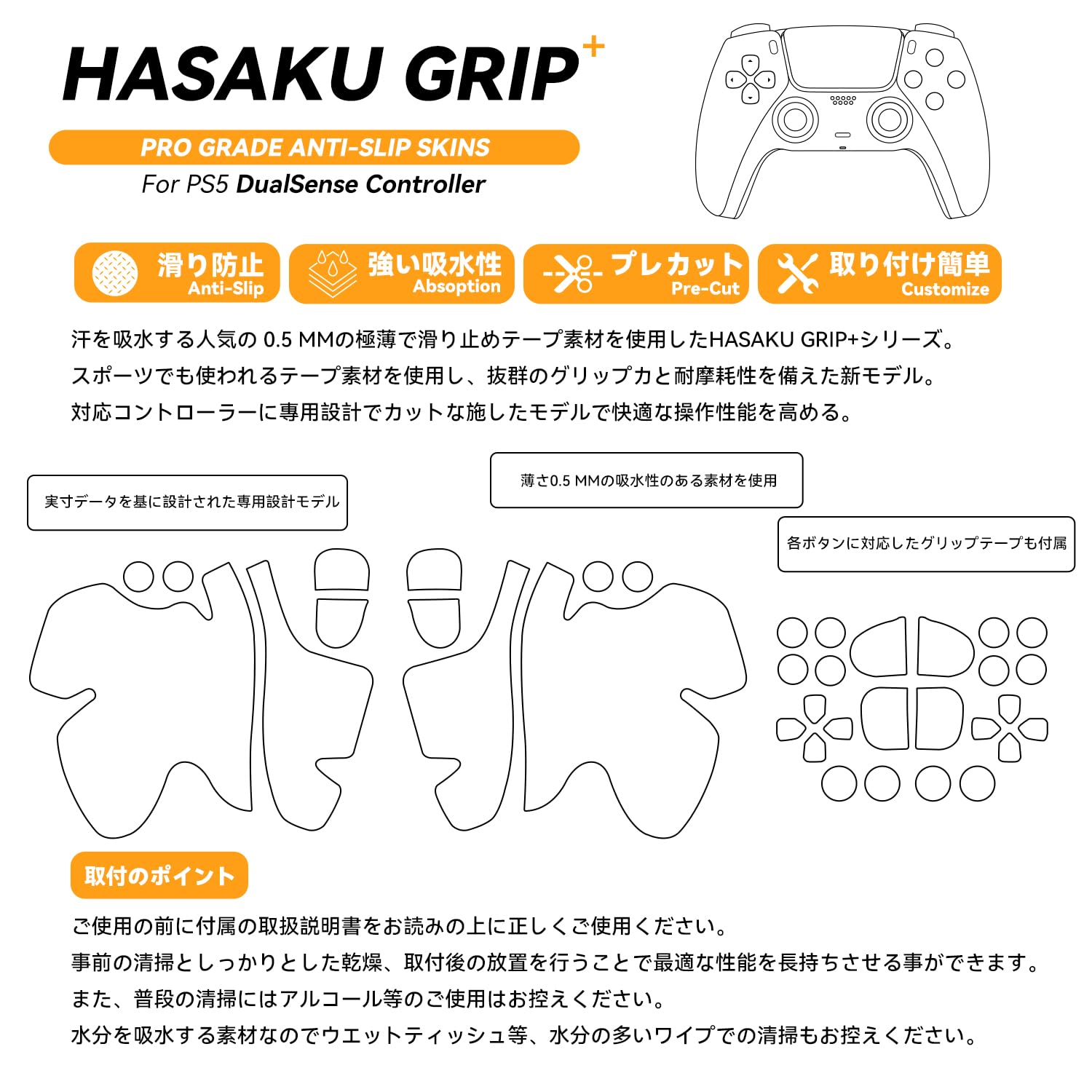 HASAKU GRIP シリーズ PS5コントローラーグリップテープ PlayStation 5 DualSense用 アンチスリップテープ 超薄0.5mm 滑り止めグリップ テープ 優れる吸水性 グリップ力強化 黒