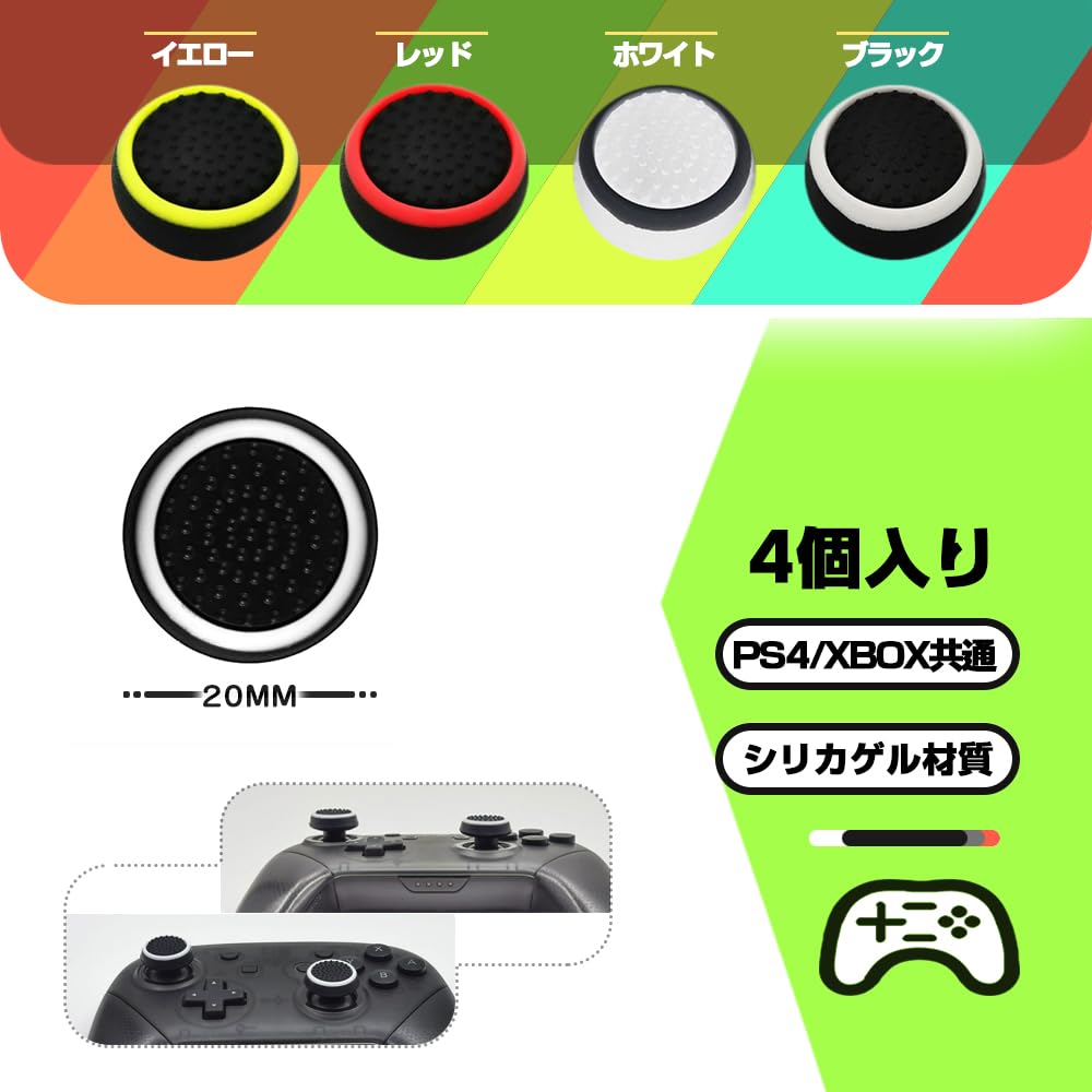 PS5 コントローラー カバー アシストリング スティック スティックカバー フリーク シリコン 保護 滑り止め プロ PS5/PS4/Xbox one コントローラーに対応 充電器 ボタン パターン オリジナル カバー4個 グリーン ホワイト ブラック