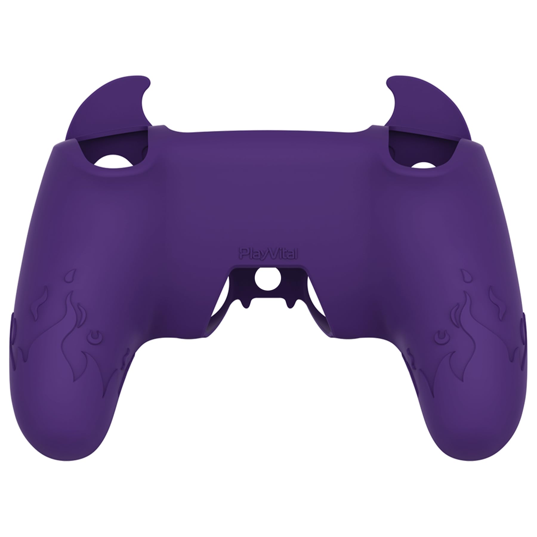 PlayVital ps5コントローラーに対応用シリコンカバー、ps5に対応用カワイイコントローラーカバースキンプロテクター(デーモンスタイル)、サムグリップキャップ&タッチパッドステッカー付き【紫】