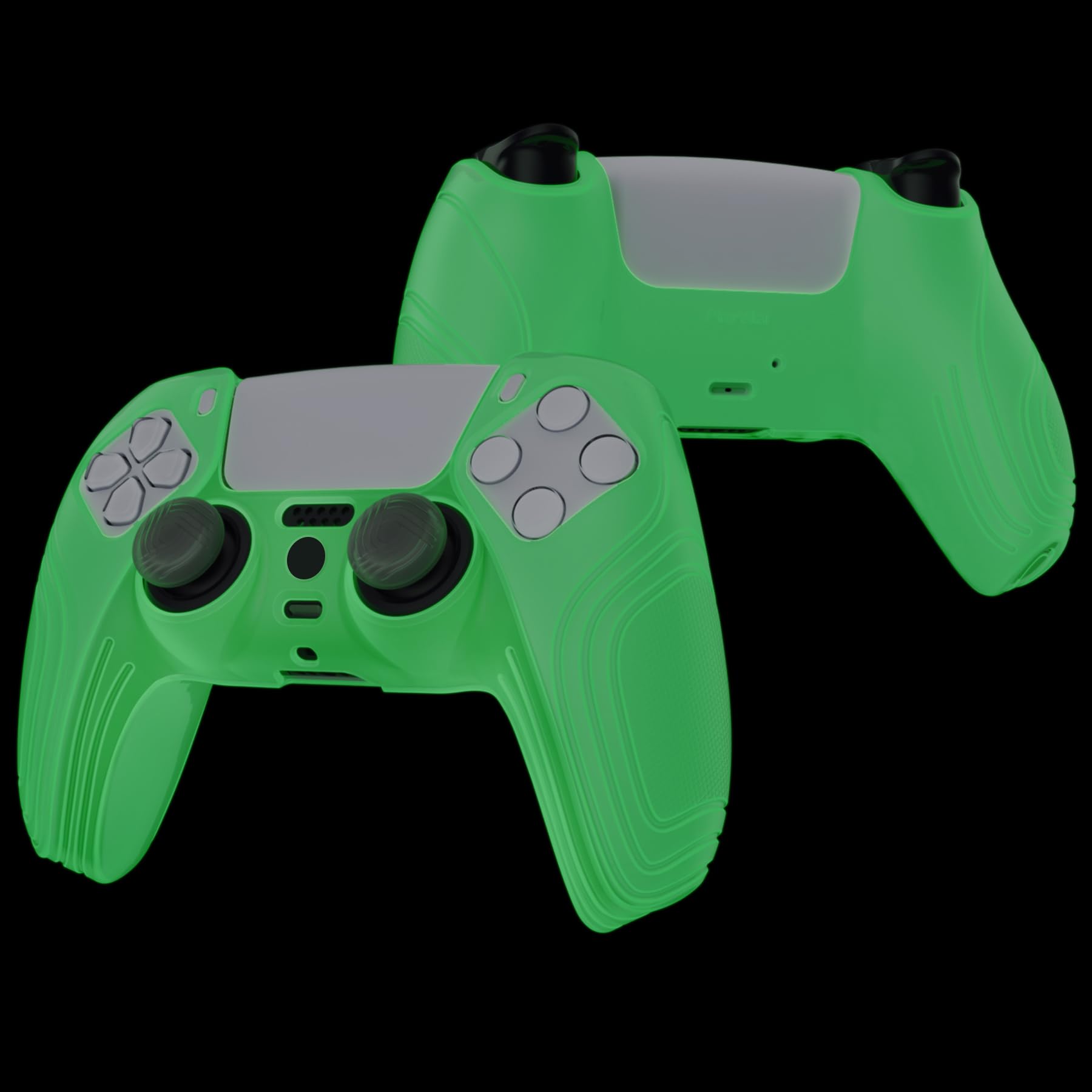 eXtremeRate PlayVital ps5コントローラーに対応用保護カバー、滑り止めコントローラーシリコンスキンケース、ps5コントローラー対応用人間工学に基づいたソフトラバー保護ケース親指スティックキャップ付き【サムライエディション】グローインダーク