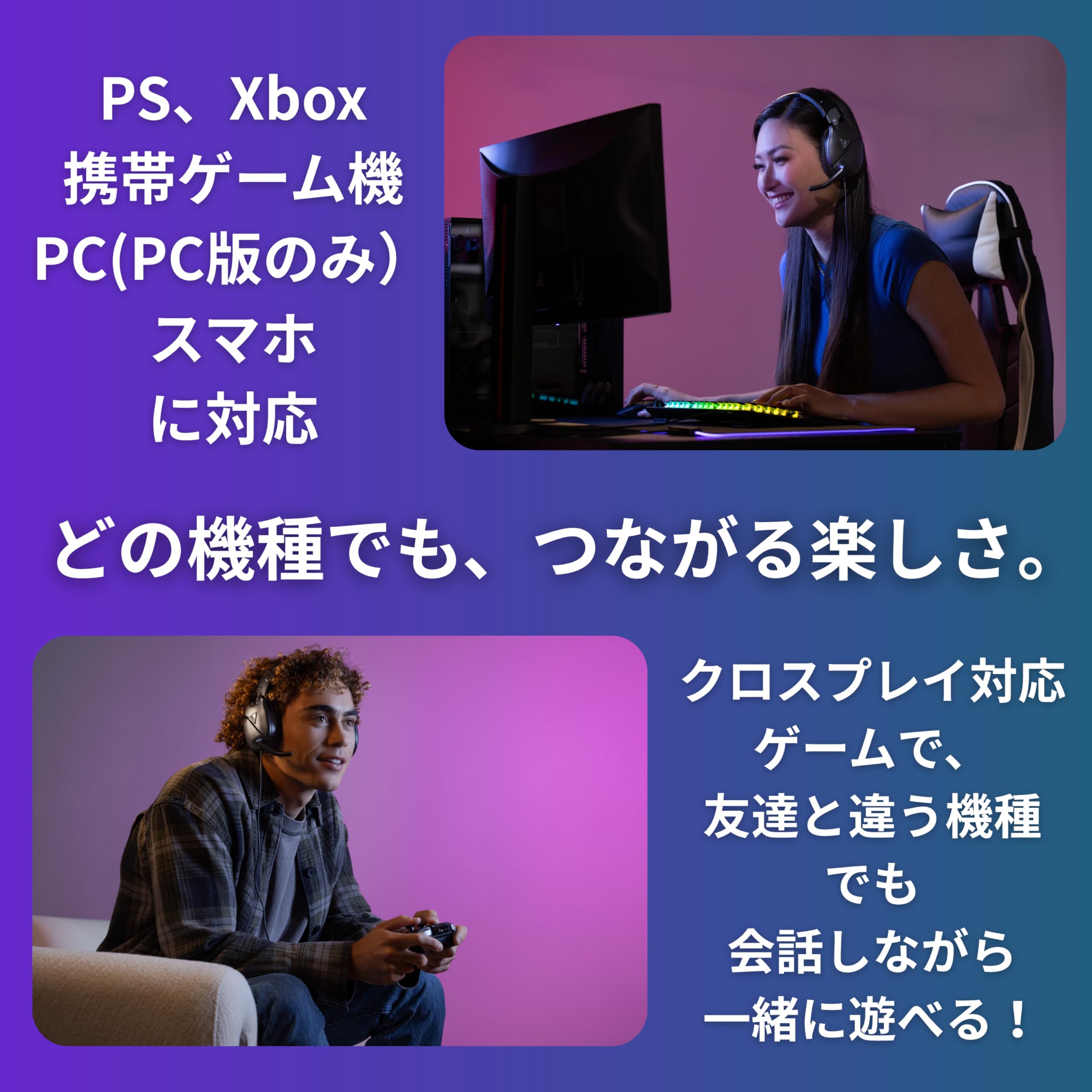 * 軽量で快適:パッド付きのヘッドバンドおよびイヤークッションを採用した軽量設計のヘッドセット。長時間のゲームプレイも快適。
