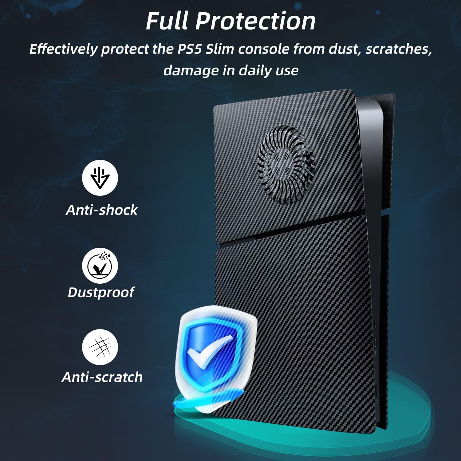 Mcbazel 新型 PS5 Slim交換用フェイスプレート 冷却口付き 放熱対策 傷防止 保護ケースカバーPS5 Slimデジタル版のみ対応-カーボンファイバーブラック