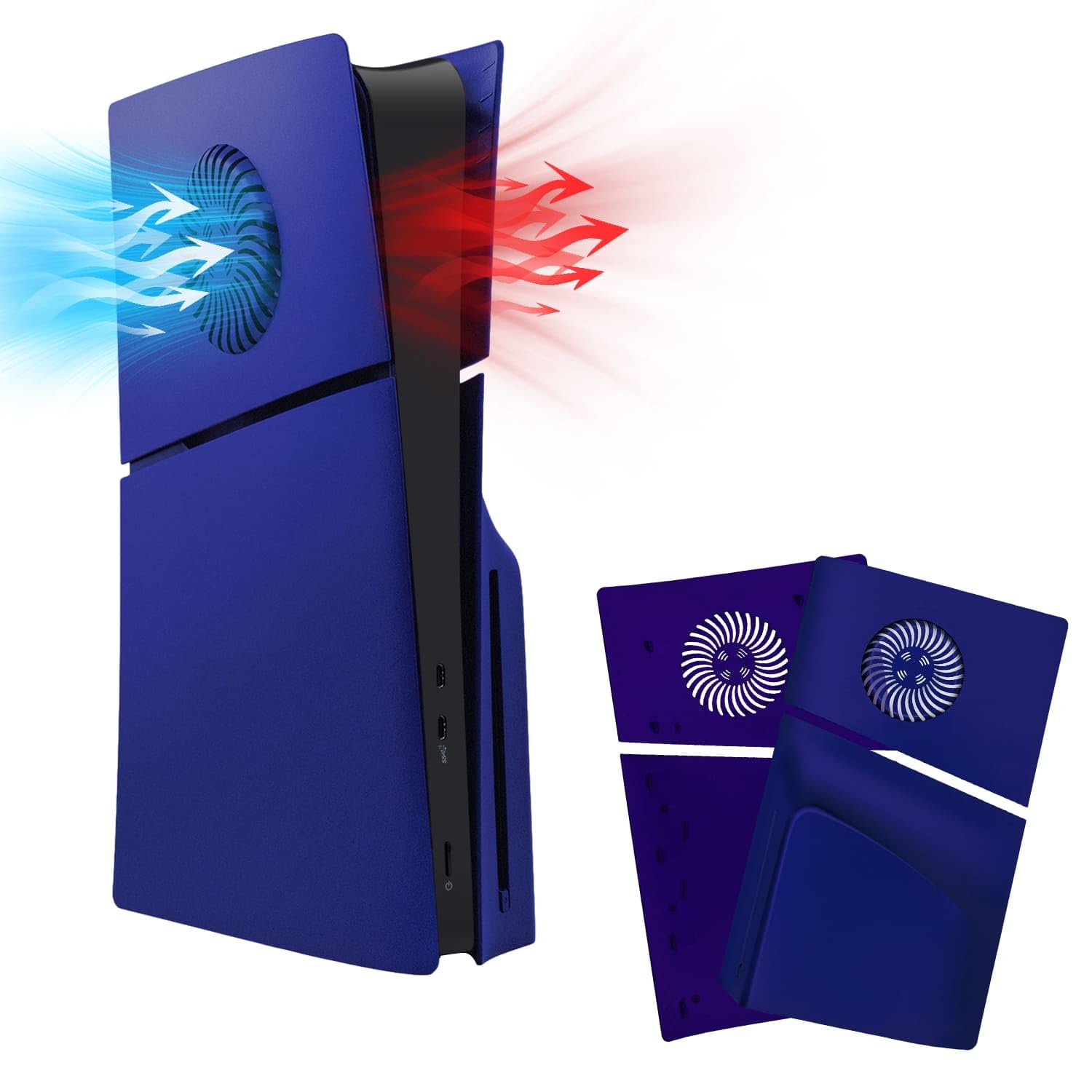 Mcbazel 新型 PS5 Slim交換用フェイスプレート 冷却口付き 放熱対策 傷防止 保護ケース プレイステ5カバー ディスク版のみ対応-ブルー