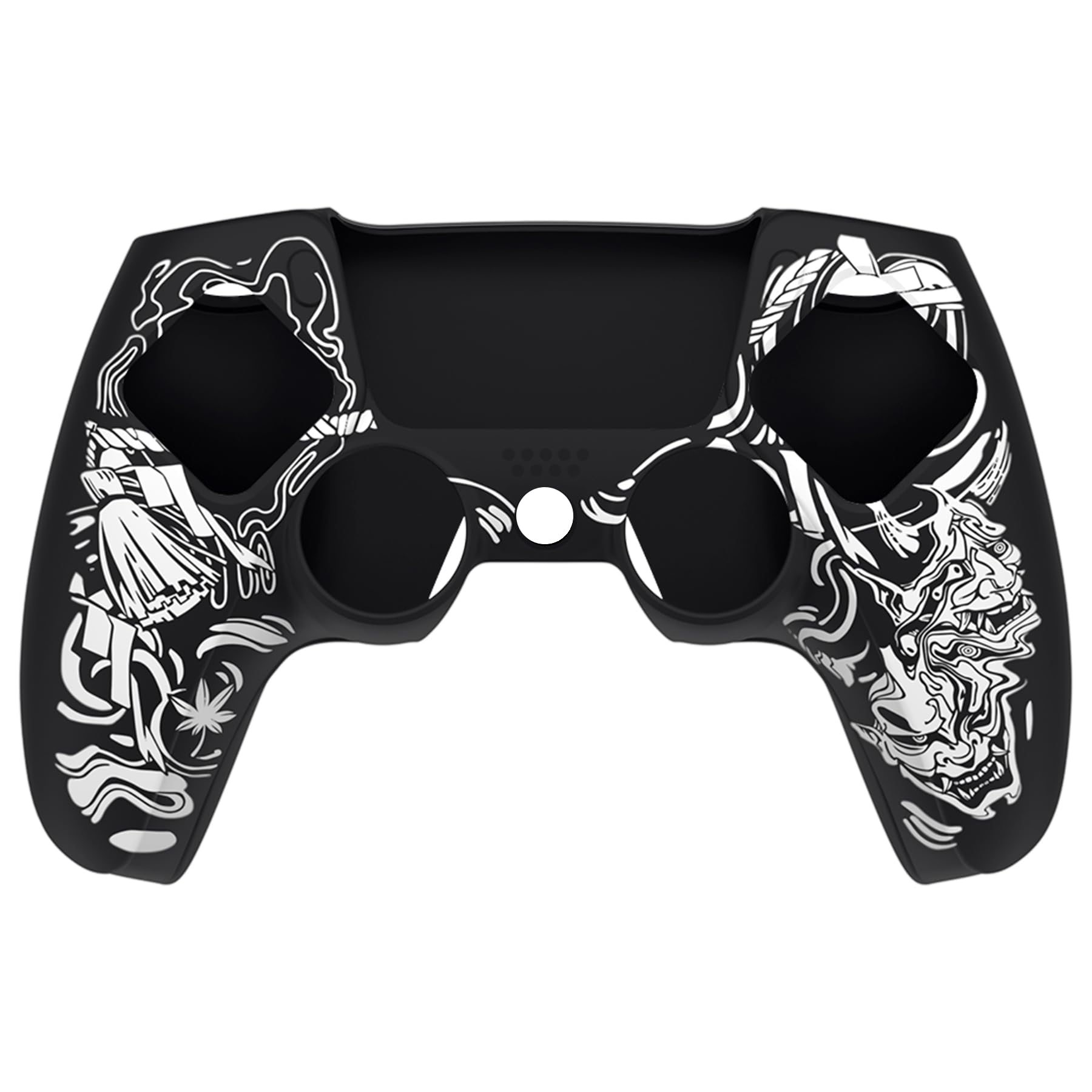 PlayVital ピュアシリーズパタンデザインps5コントローラーに対応用保護シリコンカバー、ps5コントローラーに対応用ソフトラバーグリップケースサムスティックキャップ六つ付き、充電スタンドに使用可能-【ホワイトのサムライプラジュナ】
