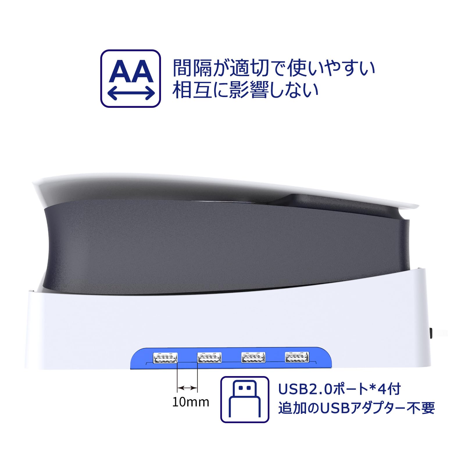 * 【4つのUSBポート付き】:ps5 pro用/新型 ps5 Slim用スタンドを使用して、コンソールのUSBポートを1つから4つに拡張しして(、幅広い互換性を実現します。コントローラー、マウス、キーボード、USBケーブル、ハードドライブなどの周辺機器を同時に使用できます。