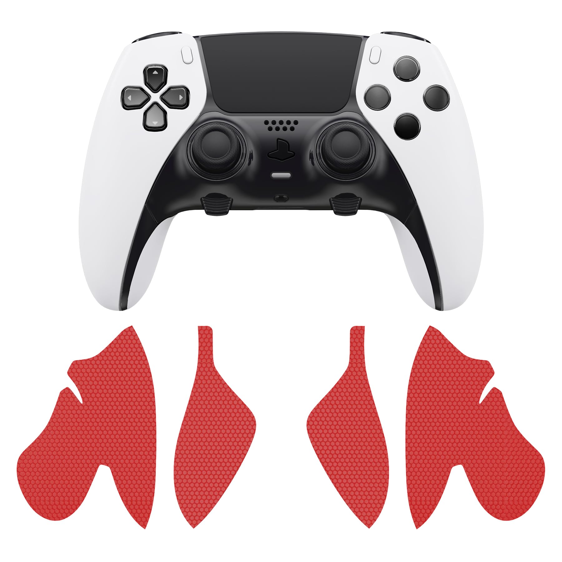 PlayVital ps5 Edgeコントローラーに対応用滑り止め汗吸収グリップステッカー、ps5 Edgeワイアレスコントローラーに対応するプロなテクスチャード加工のソフトPUハンドルグリップステッカー【レッド】