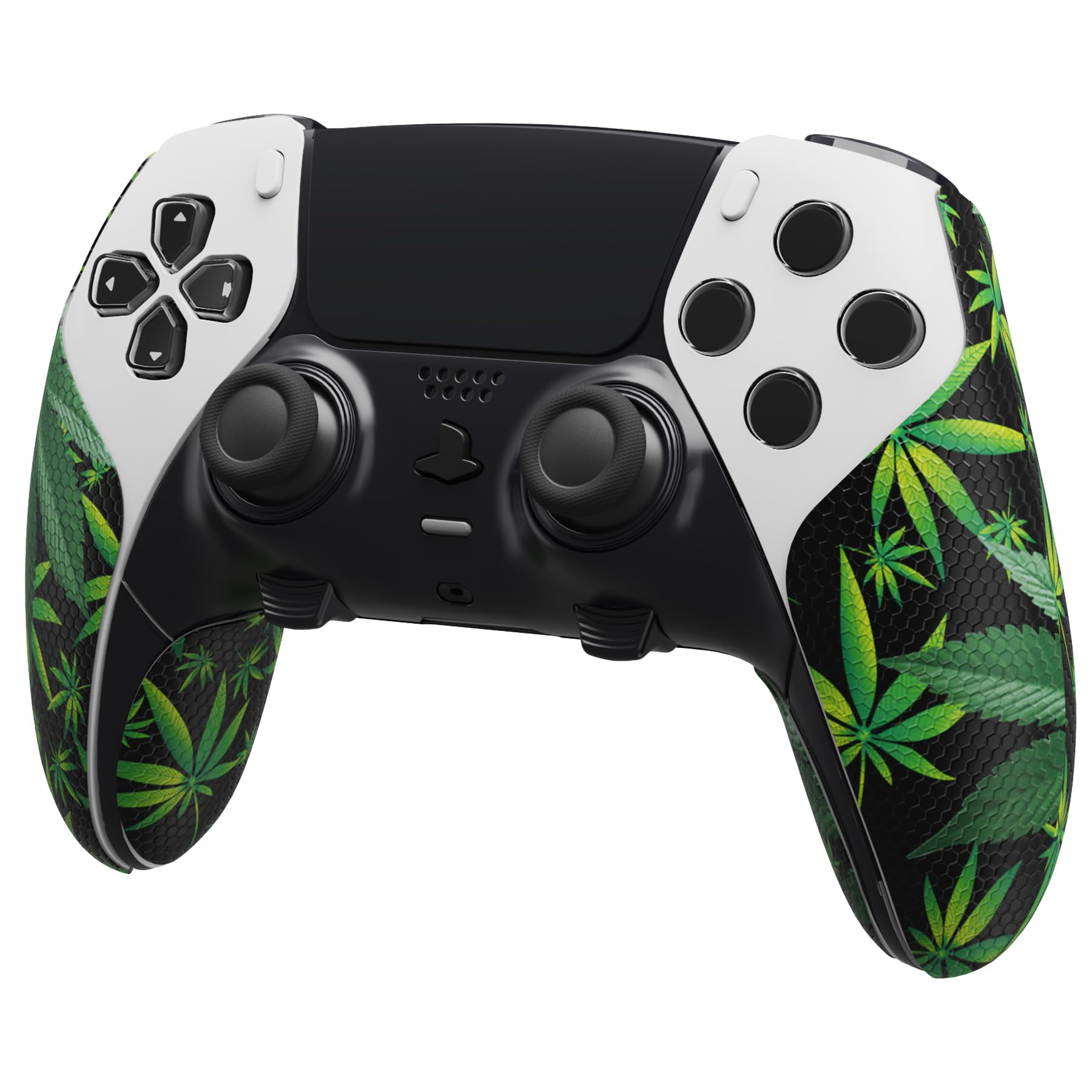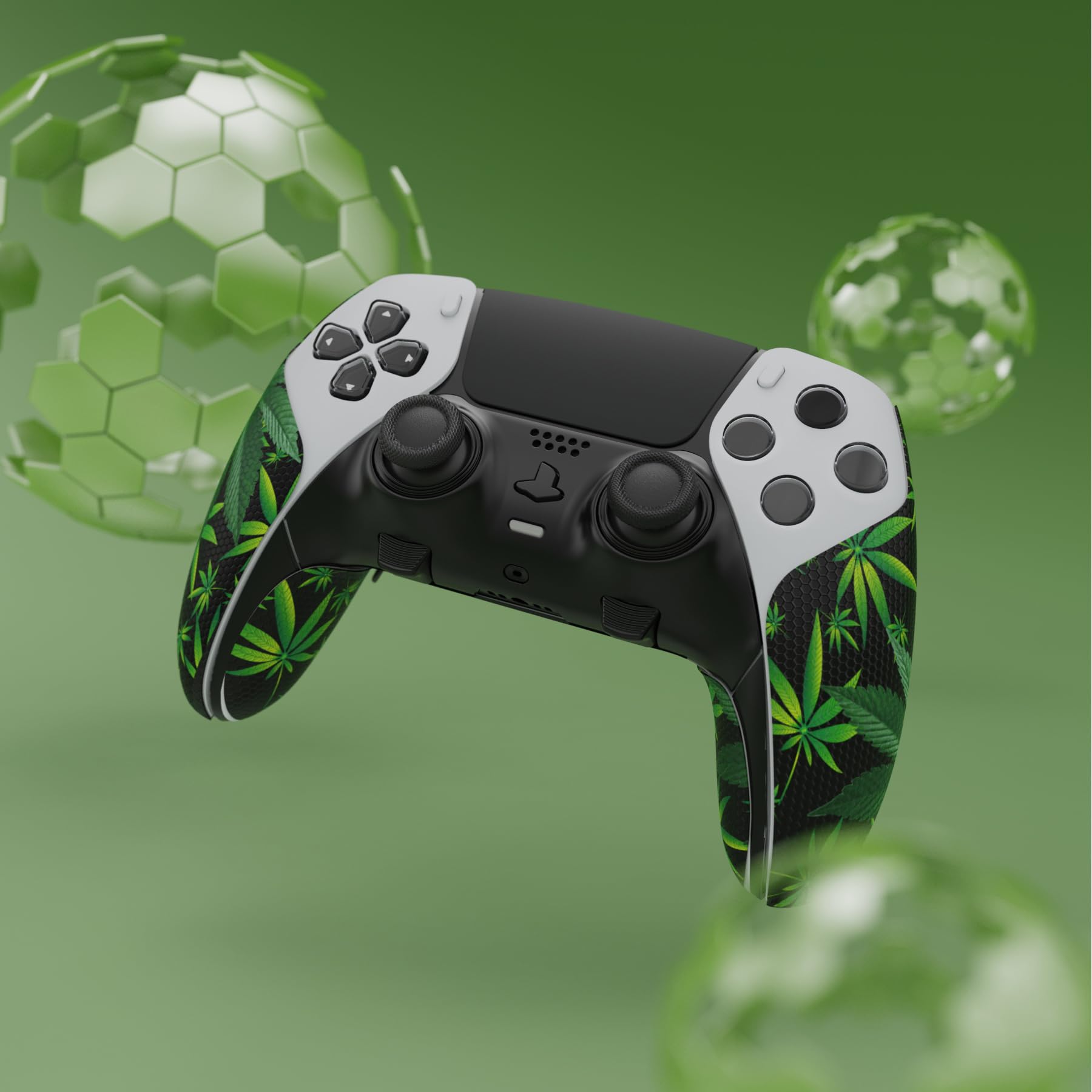 PlayVital ps5 Edgeコントローラーに対応用滑り止め汗吸収グリップステッカー、ps5 Edgeワイアレスコントローラーに対応するプロなテクスチャード加工のソフトPUハンドルグリップステッカー【グリーンウィード】