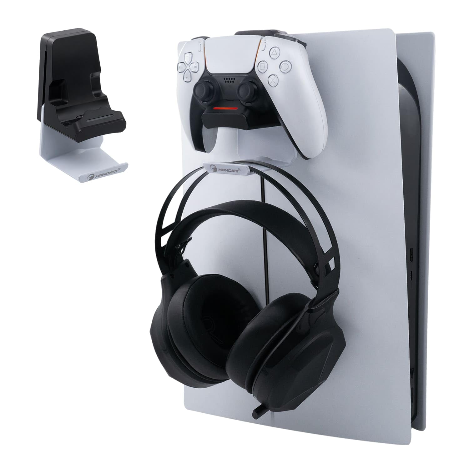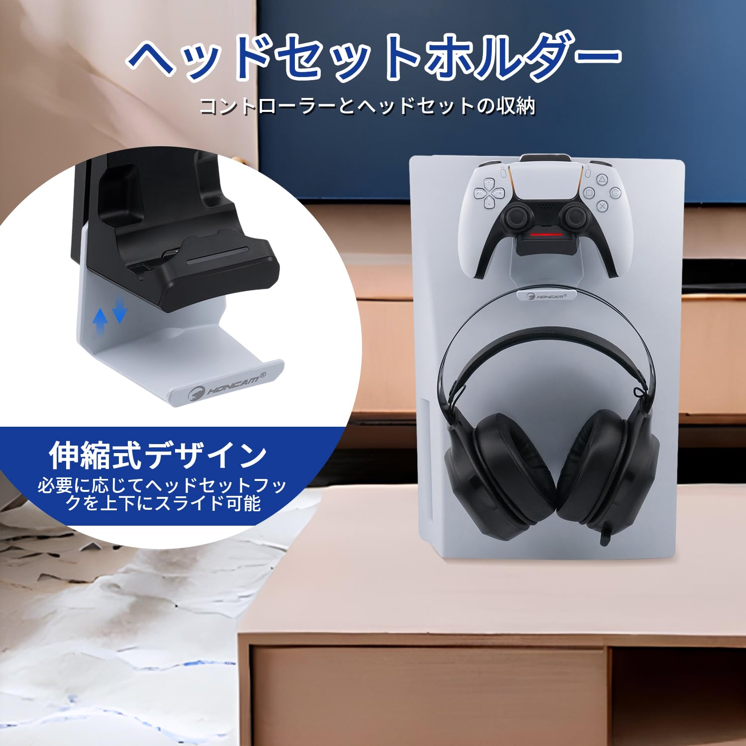 Mcbazel 2 in 1 PS5 Edge/DS コントローラー用 急速充電スタンド ヘッドホンハンガー付き 過充電防止 多機能収納ブラケット PS5/PS5 Pro/PS5 Slim対応 安定材質 ホワイト 省スペース設計-ホワイト