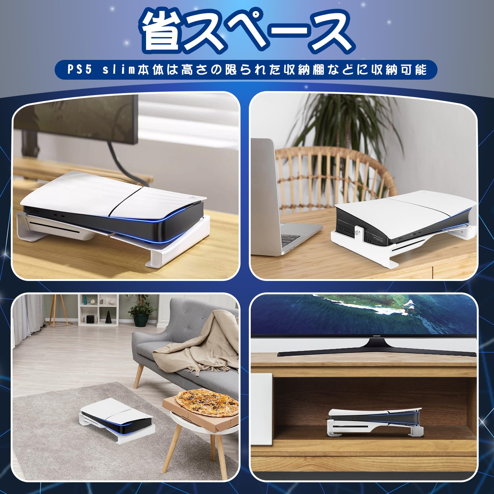 * 【省スペースデザイン】このスタンドを使用することで、PS5 Slim本体を収納棚やキャビネットに収納でき、スペースを有効活用しながら部屋を整理整頓できます。