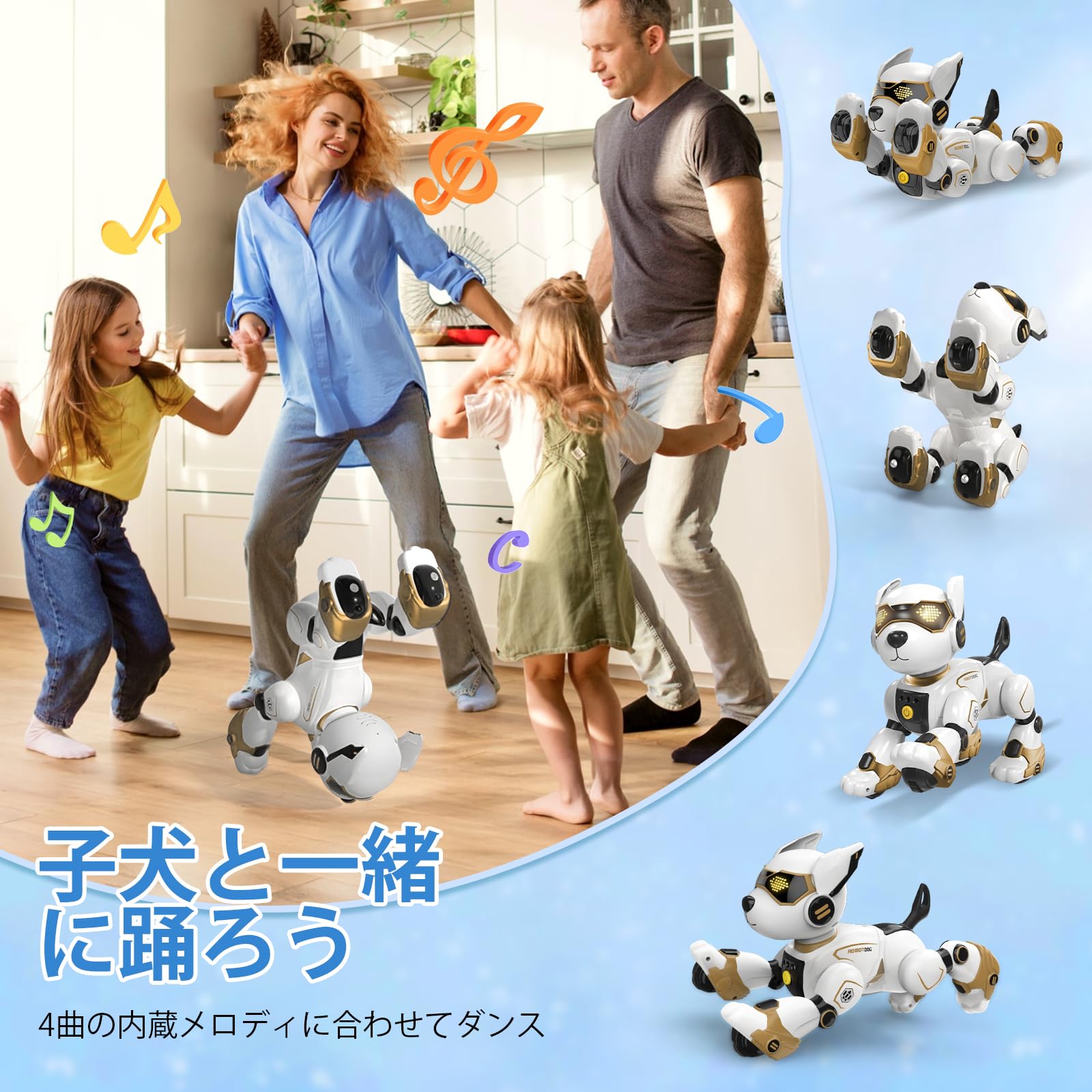 * 複数の操作方法: このロボット犬は、普通のおもちゃを超えて、子供たちのインタラクティブな遊び相手になります。操作、タッチ、ジェスチャー認識、または音声コマンドで簡単に操作できます。その多機能な特性により、この犬 ロボット おもちゃは、子供たちのさまざまな気分を満たす本当の友達になります。楽しい学びと無限の楽しさで、子供たちに豊かでカラフルな幼少期を提供します