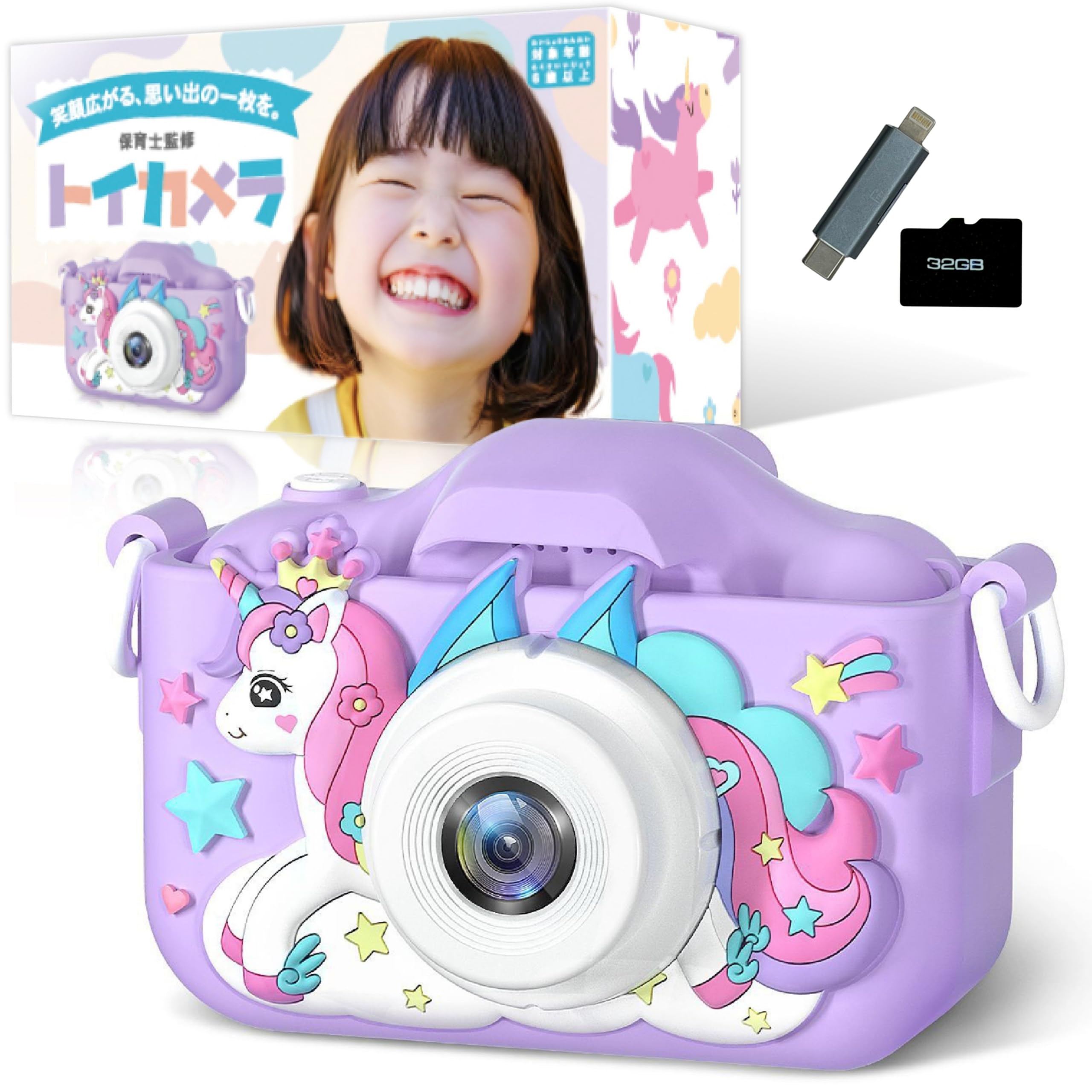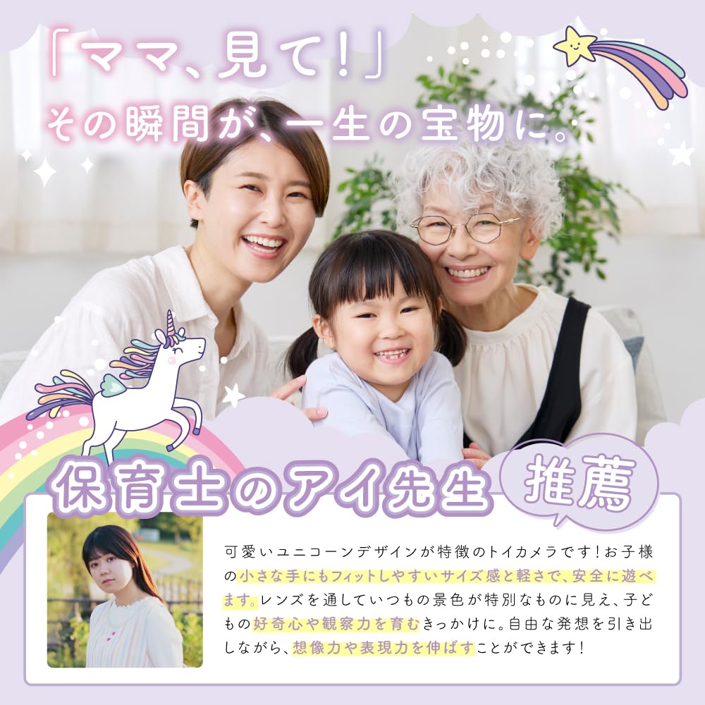 * 【ユニコーンデザイン】女の子に大人気のユニコーンモデルの子供カメラ。一緒におでかけしたくなるデザインのキッズカメラに仕上がっています。